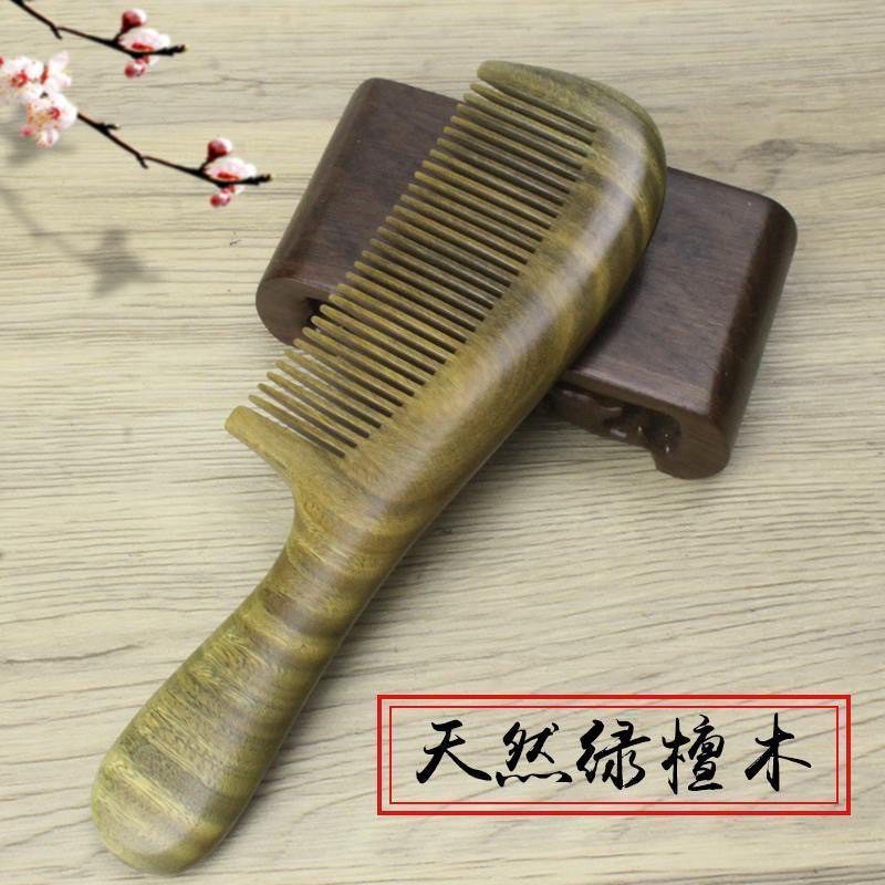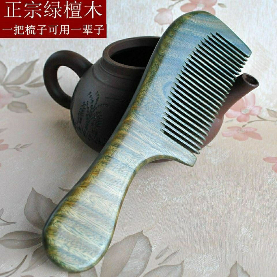 正宗绿檀香木梳子整木绿檀木制作有檀香无漆会吐丝会变色手感质感