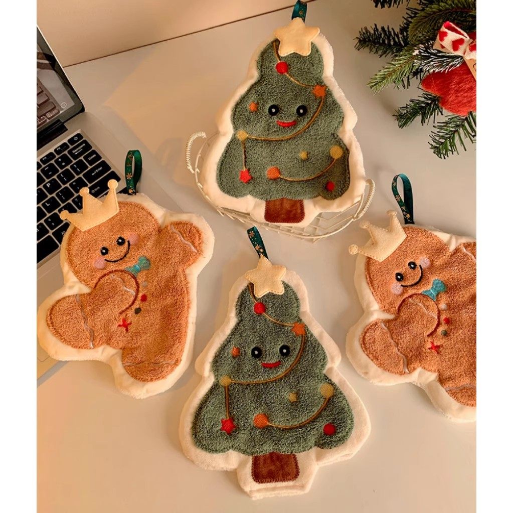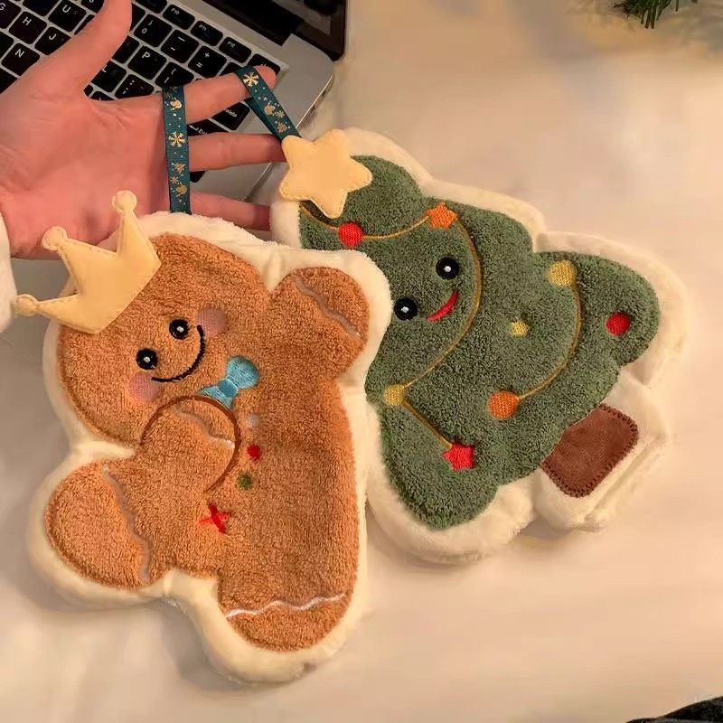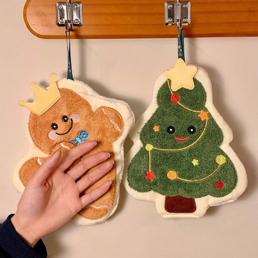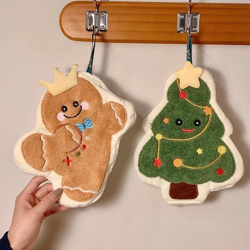 圣诞擦手巾姜饼人卡通加厚挂式圣诞树吸水速干毛巾儿童抹布卫生间