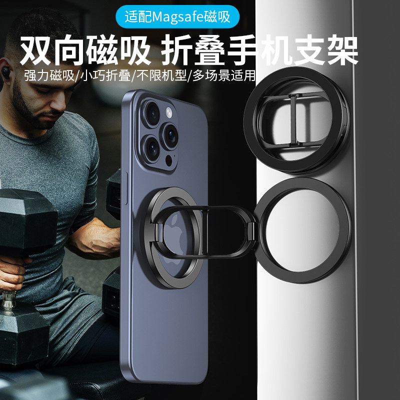 magsafe双环磁吸折叠手机支架平板通用多功能便携双向吸小巧磁力神器vlog拍摄出行跑步健身房冰箱双面吸附铁
