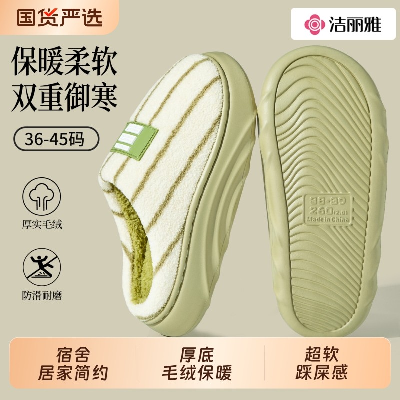 洁丽雅厚底棉拖鞋女士冬季2025新款宿舍居家增高保暖毛绒拖鞋男款
