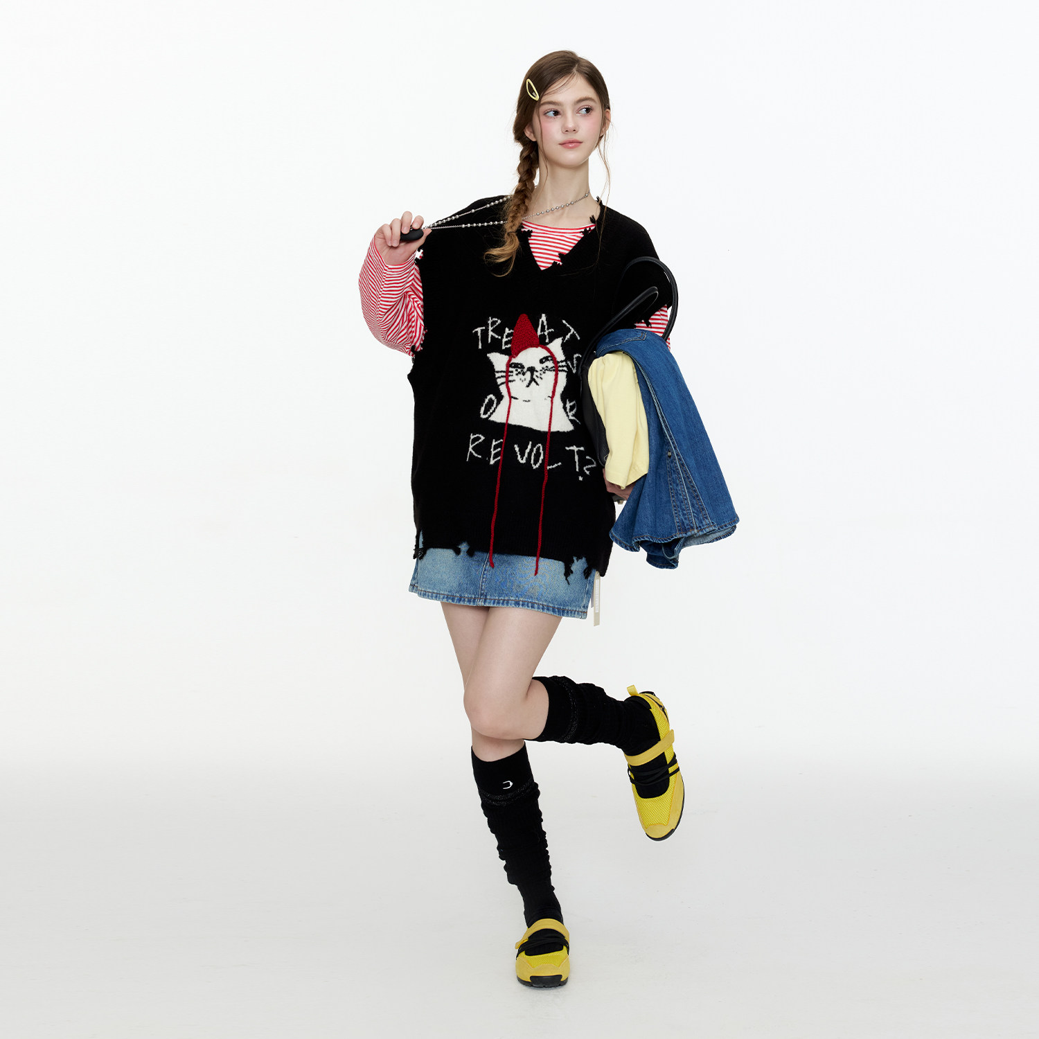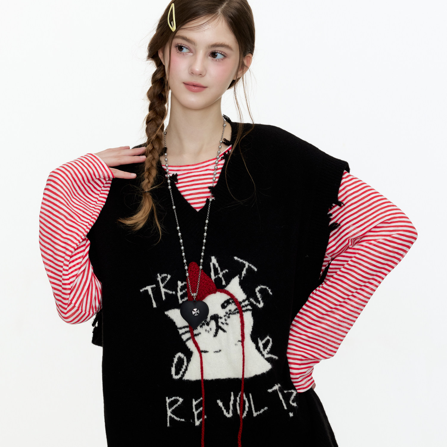 青年潮流品牌 小红帽猫咪毛衣背心