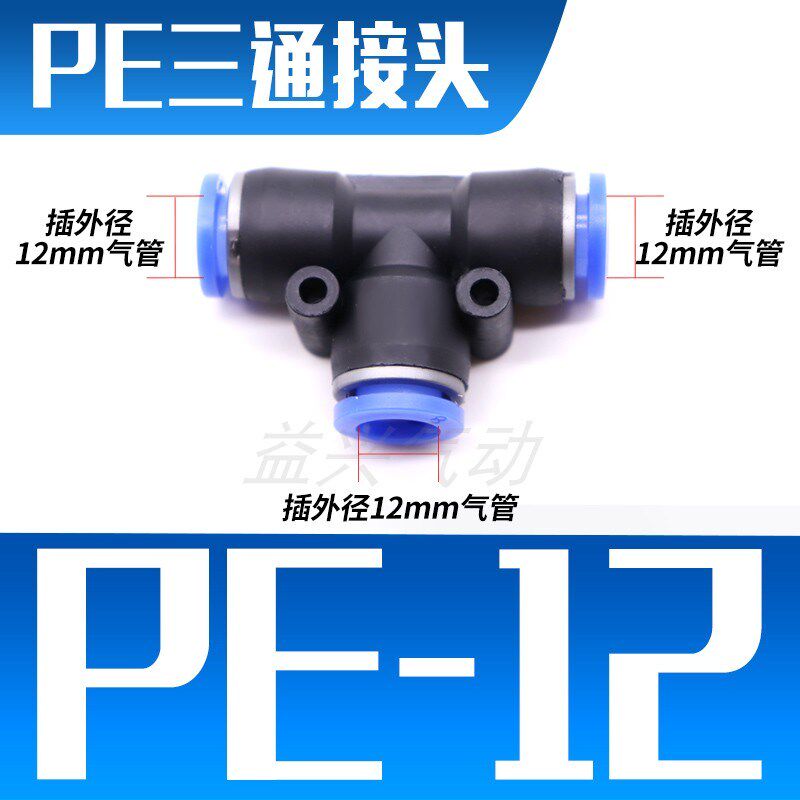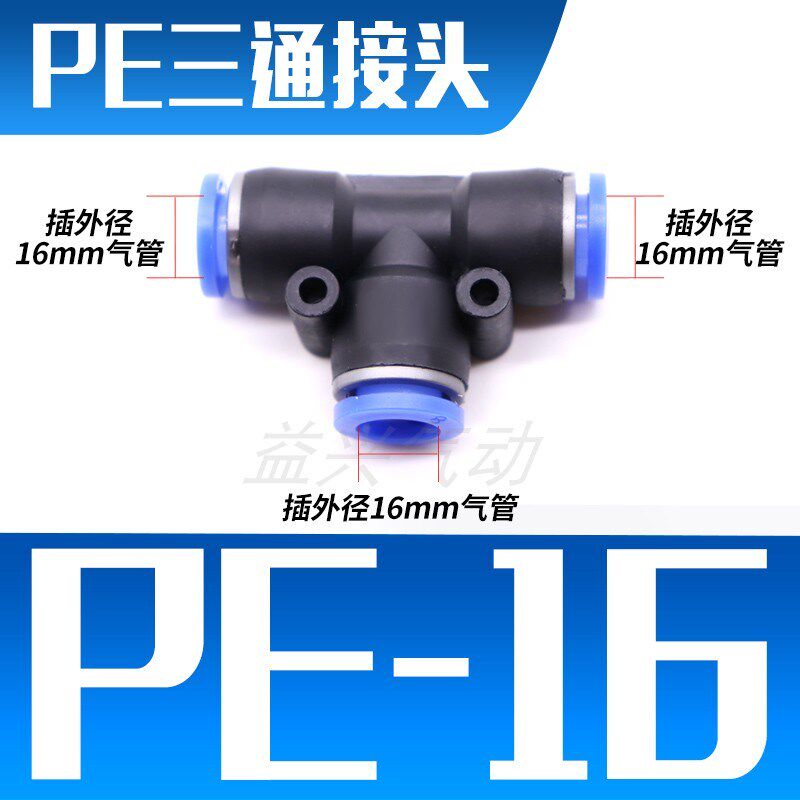气动元件PE6/PE12气管快速插接头4 PE8 PE10塑料T型三通16mm外径