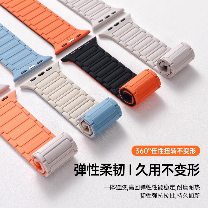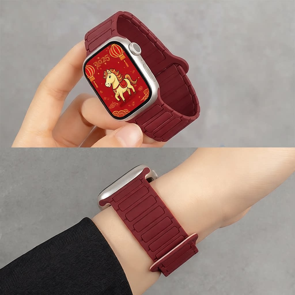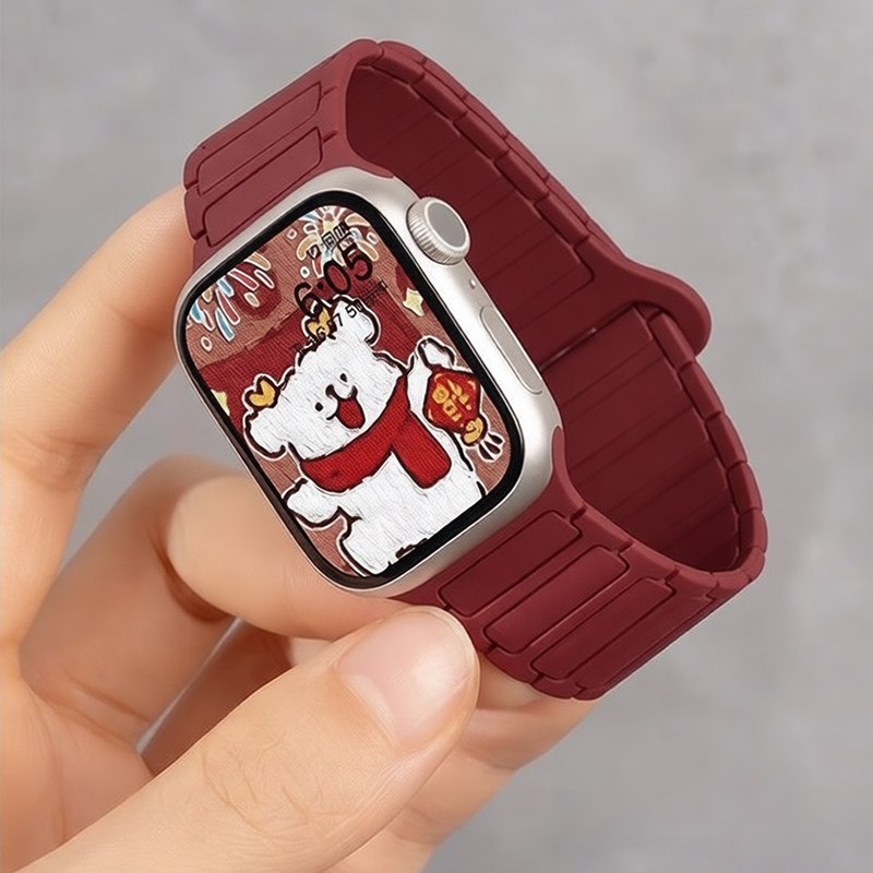 适用苹果手表iwatch表带硅胶磁吸2026红色s10/s11回环式运动手表带applewatchse/ultra替换腕带粉色黑色星光
