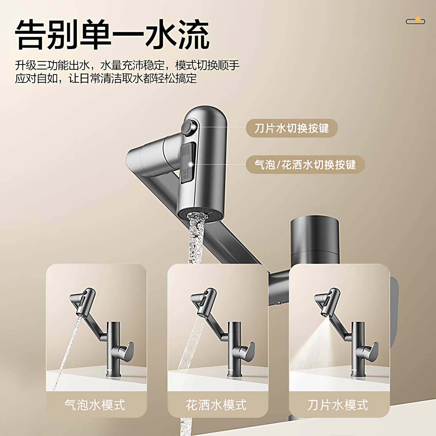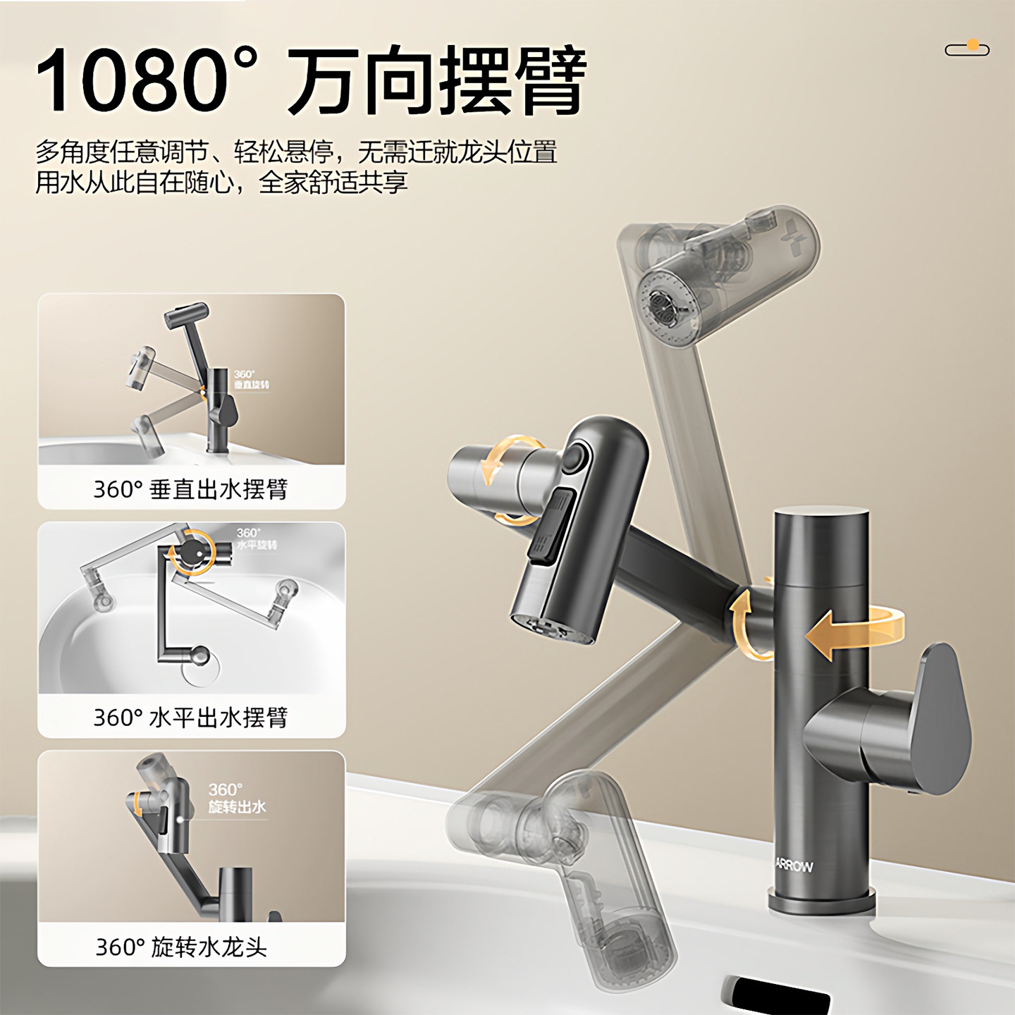 箭牌机械臂面盆龙头万向旋转卫生间冷热二合一洗手台洗脸盆水龙头