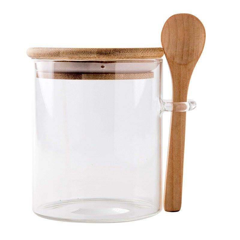 圆形玻璃密封储物罐隔夜燕麦杯耐高温带勺五谷杂粮咖啡豆收纳瓶子
