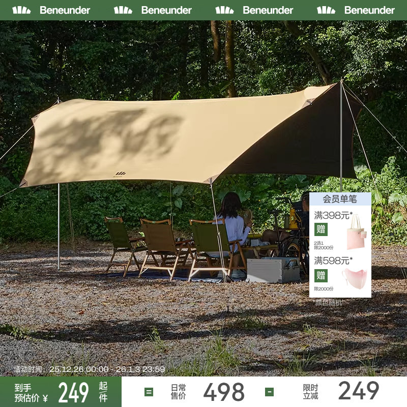 Beneunder天幕帐篷户外黑胶简易遮光防晒免搭建速开露营遮阳棚