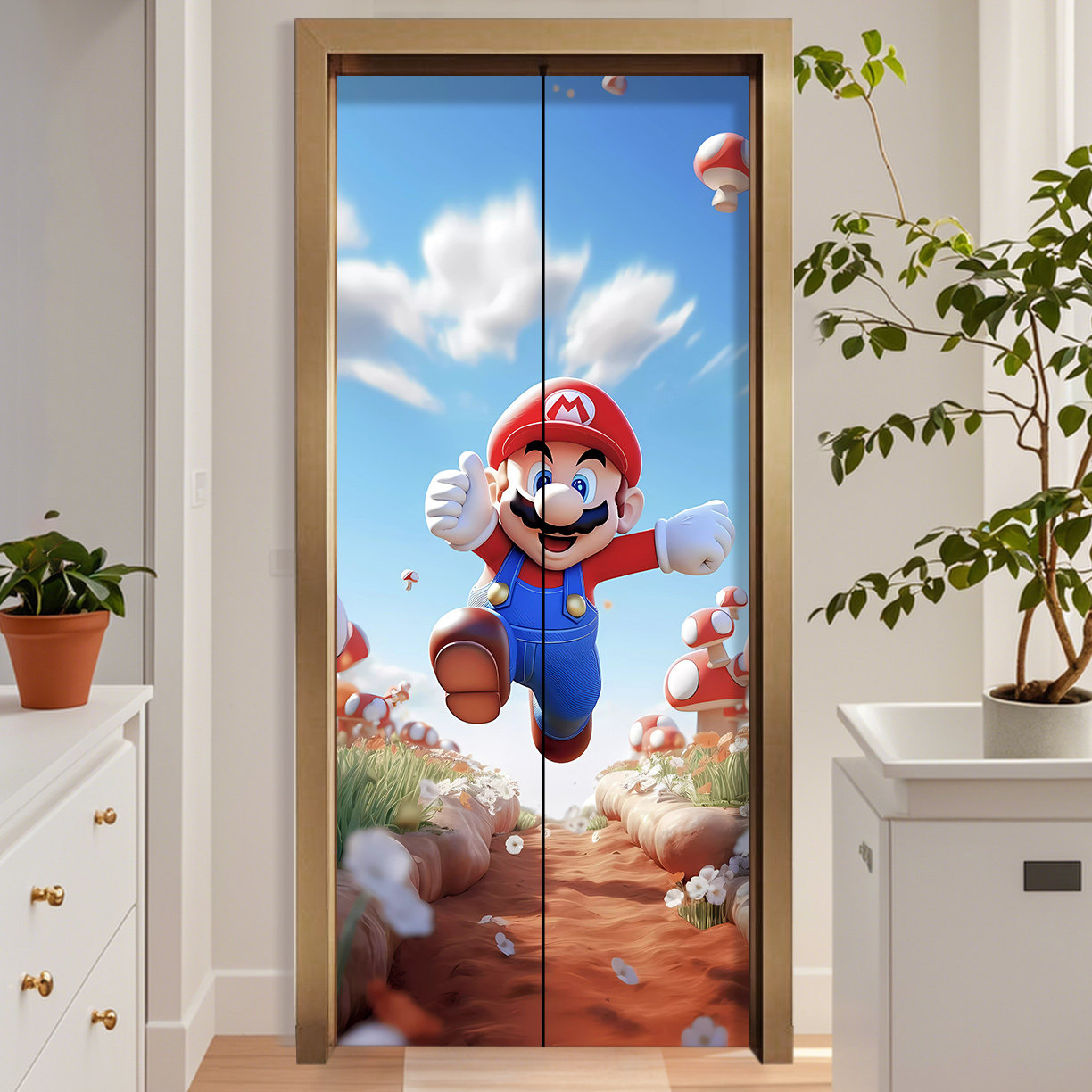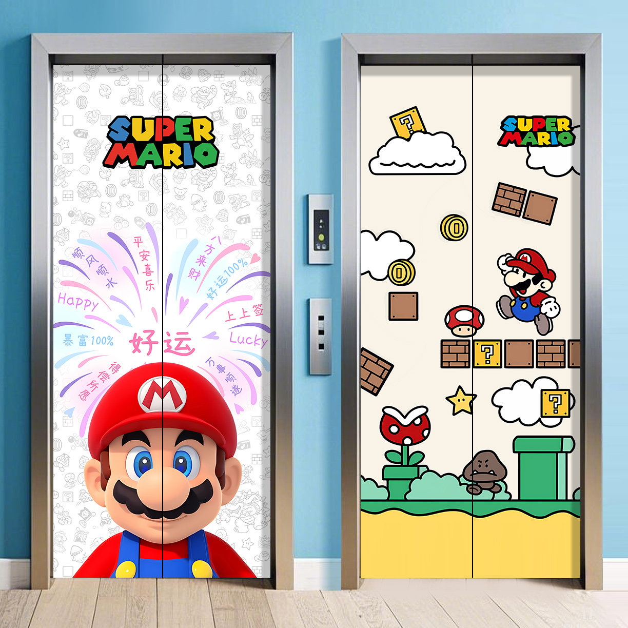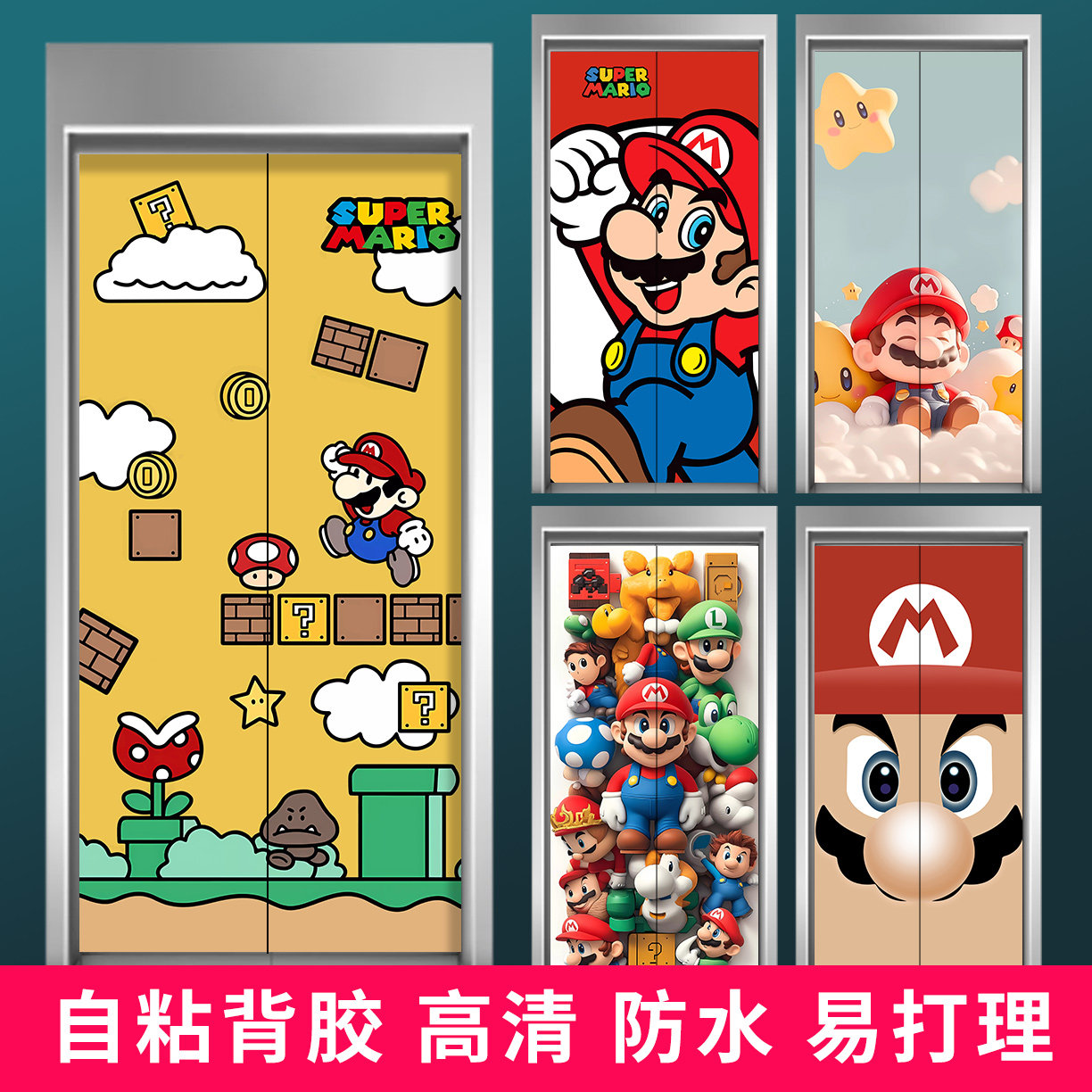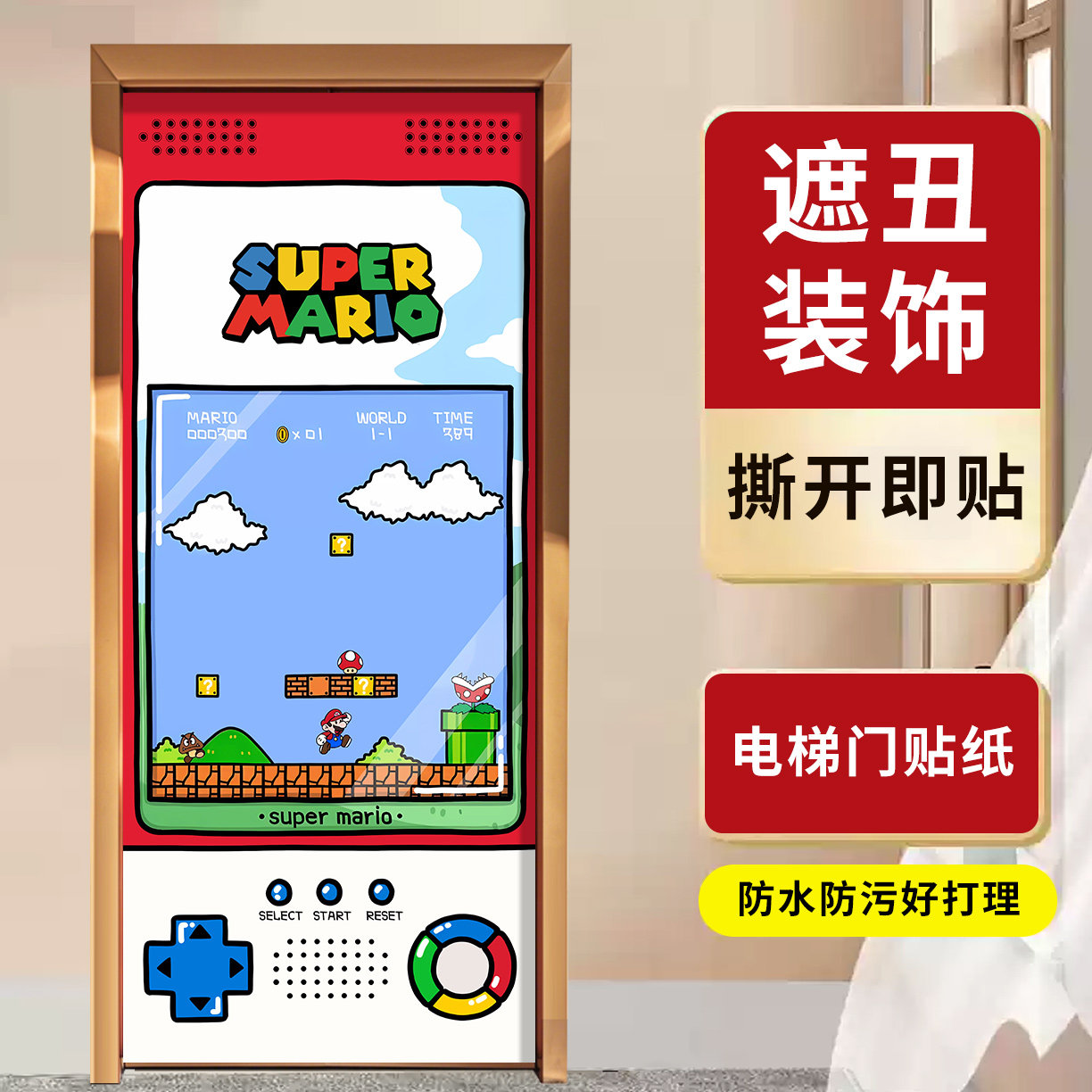马里奥电梯门贴纸高级感一梯一户门口加厚高级卡通防水遮丑装饰画