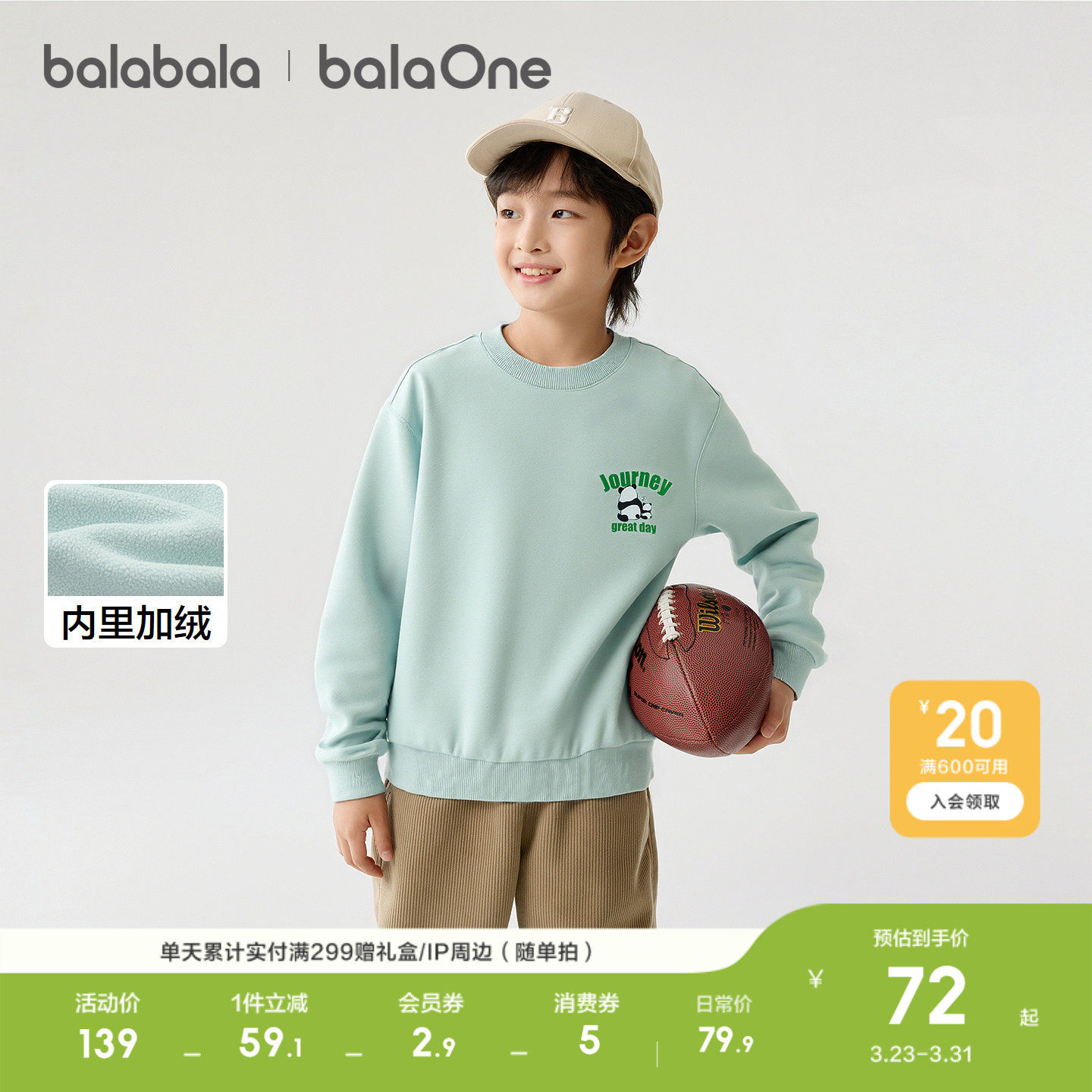 【balaOne】巴拉巴拉童装儿童卫衣男女童2026百搭秋冬装加绒休闲