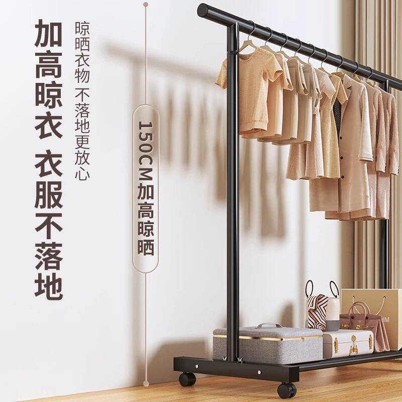 衣帽架落地可移动挂衣架卧室衣服收纳凉衣杆晾衣架子晾晒双杆客厅