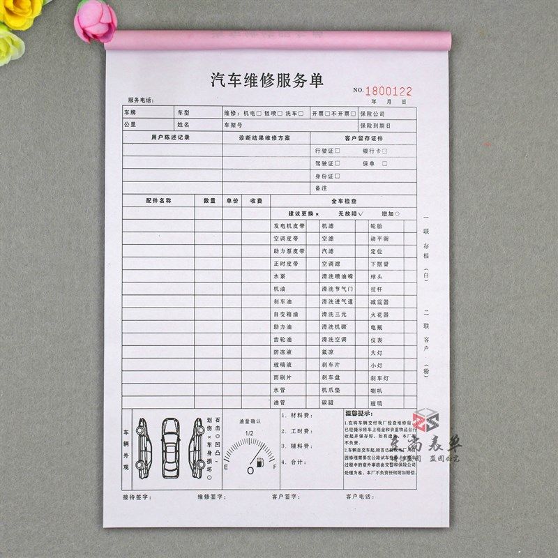 汽车修理厂汽修接待检查施工报价单据车辆维修服务接车单二联定做