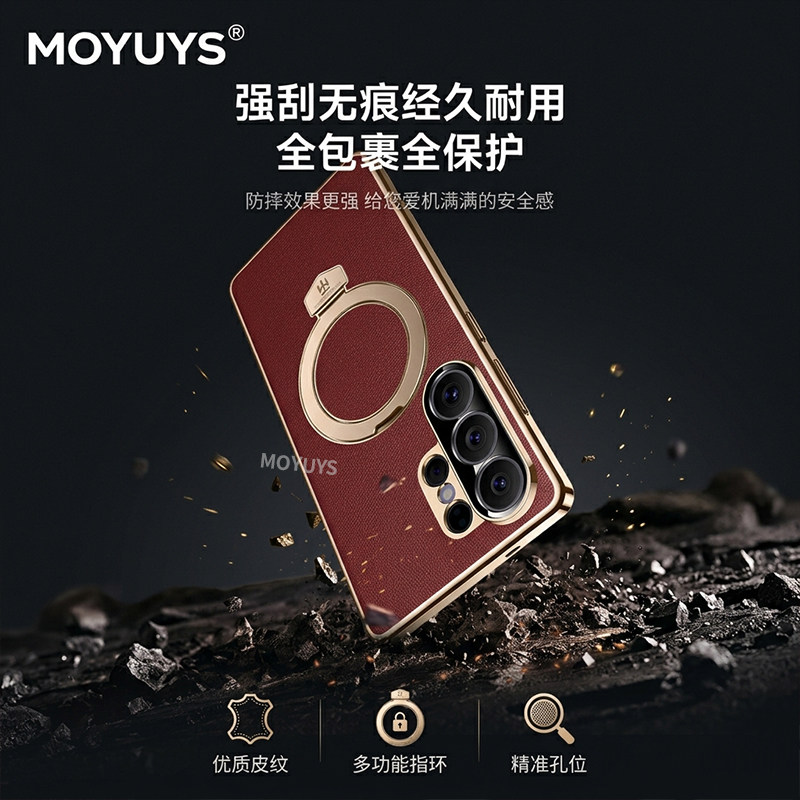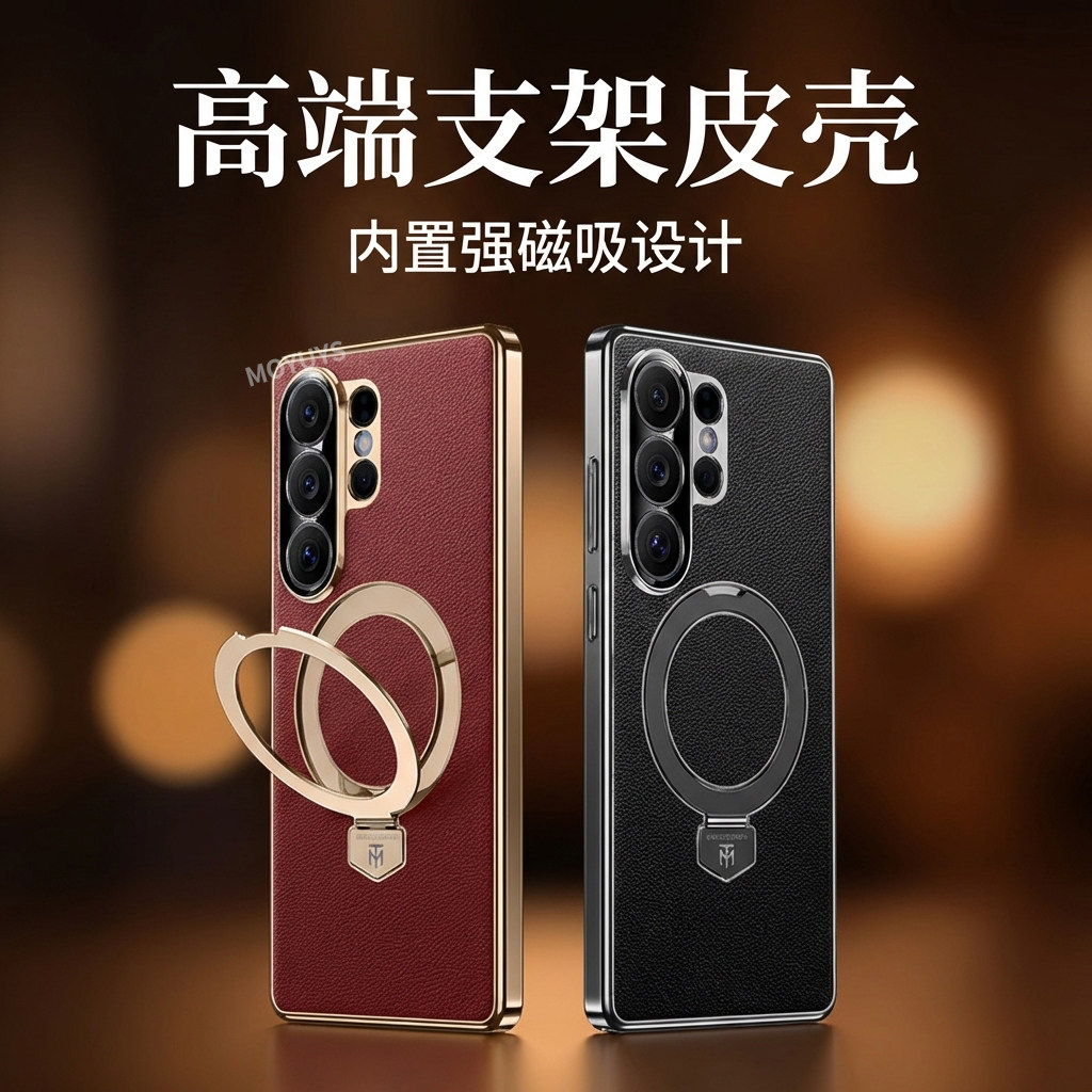 适用三星s26ultra手机壳高端商务素皮s25ultra磁吸折叠支架s24ultra全包软边防摔s23u男女电镀高级感小众超火