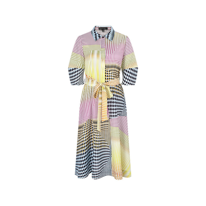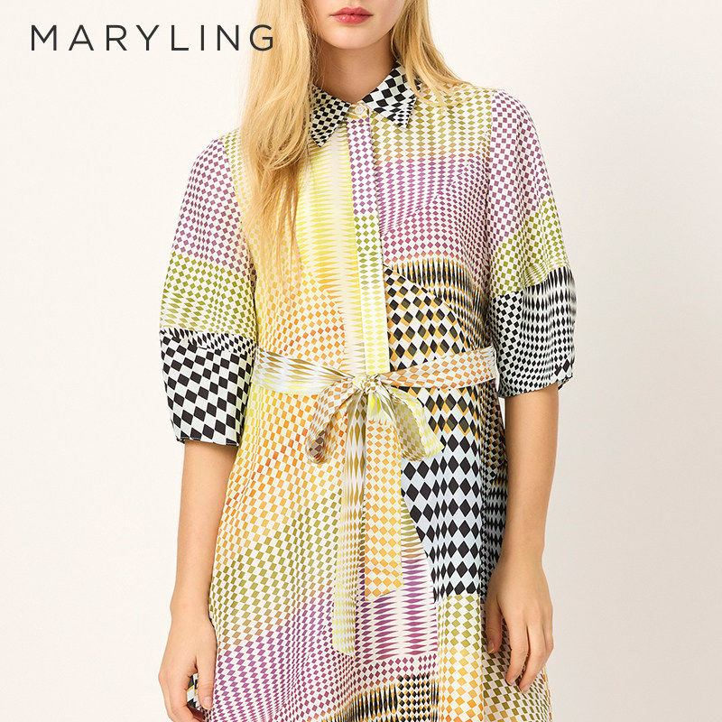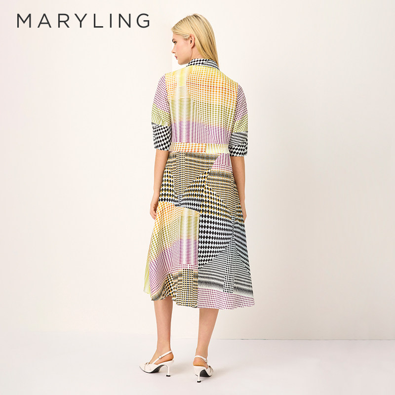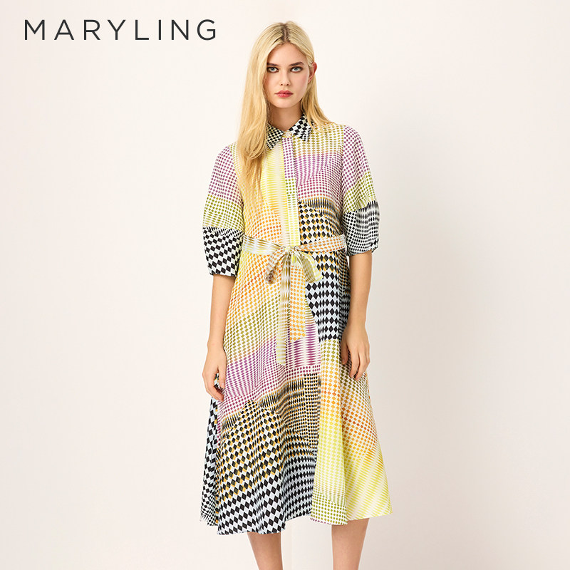 MARYLING玛俪琳2025春季新品撞色菱形格纹真丝连衣裙A1FBW61680