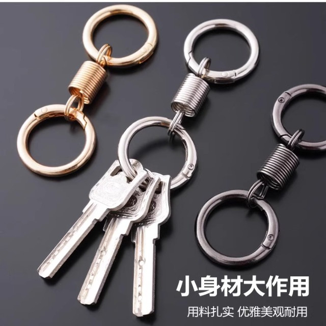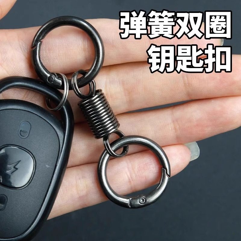 弹簧双圈钥匙扣小众设计简约个性钥匙圈挂件情侣金属汽车钥匙链