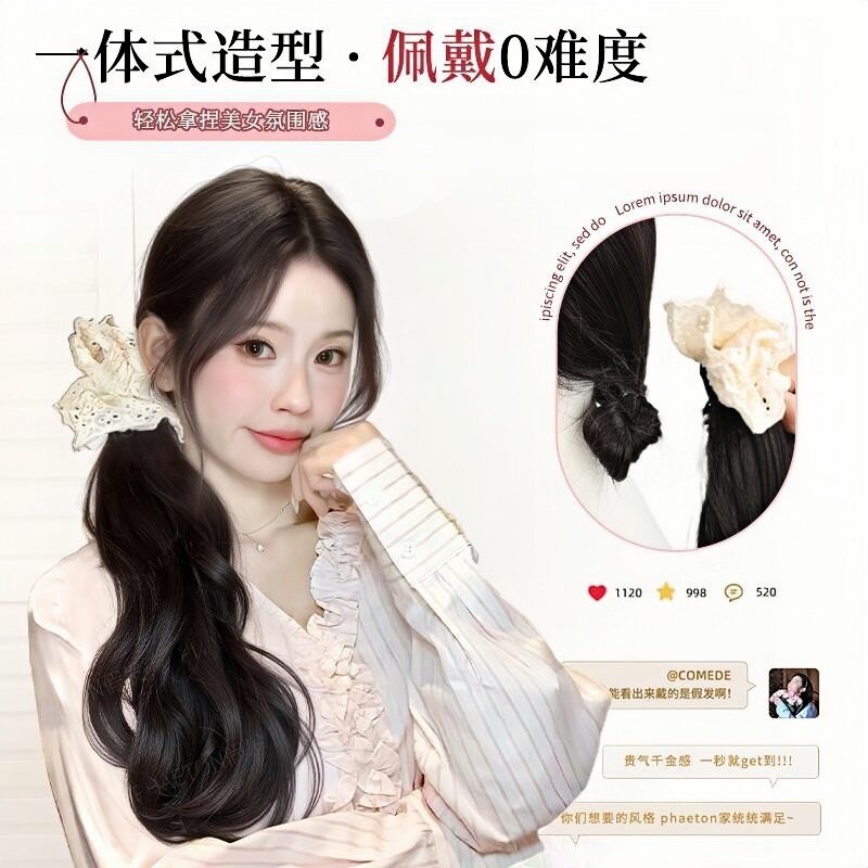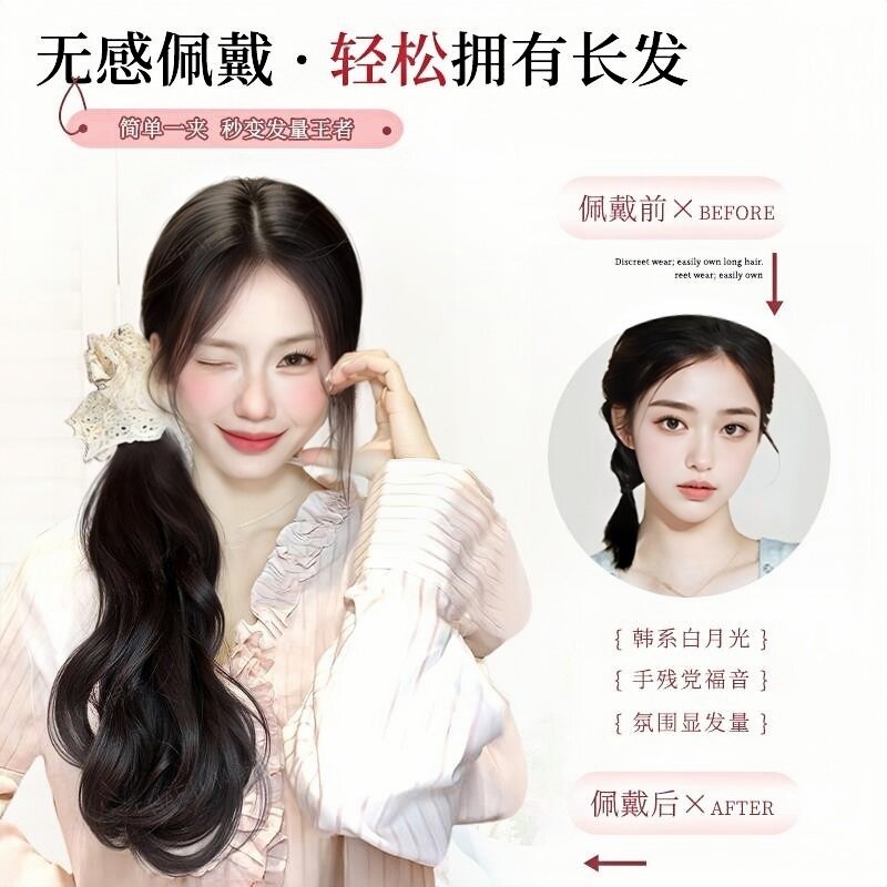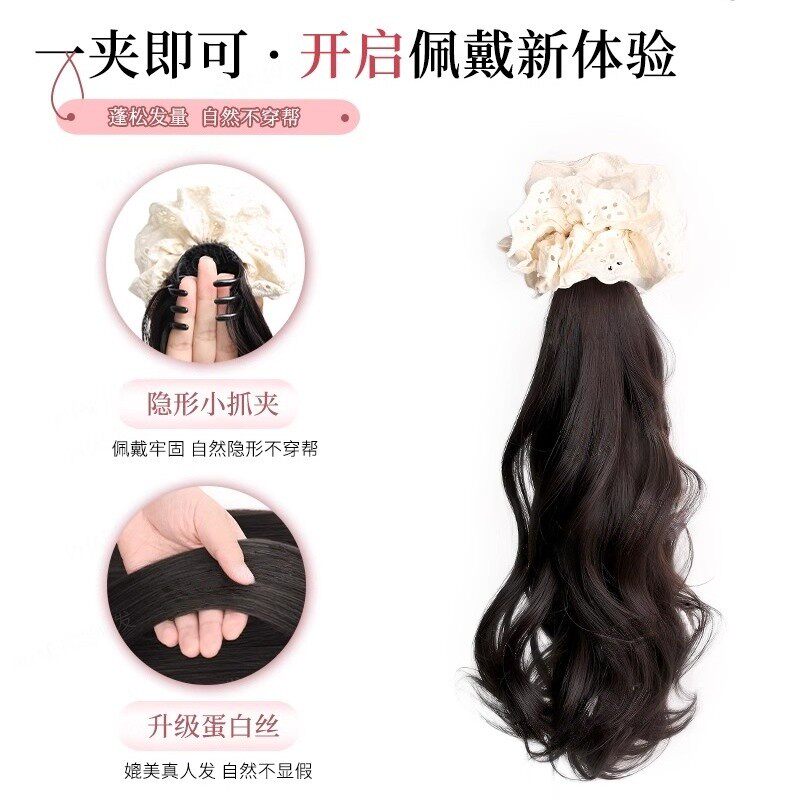 马尾假发女侧边梨花长卷发抓夹低露思同款大肠发圈假辫子长发波浪