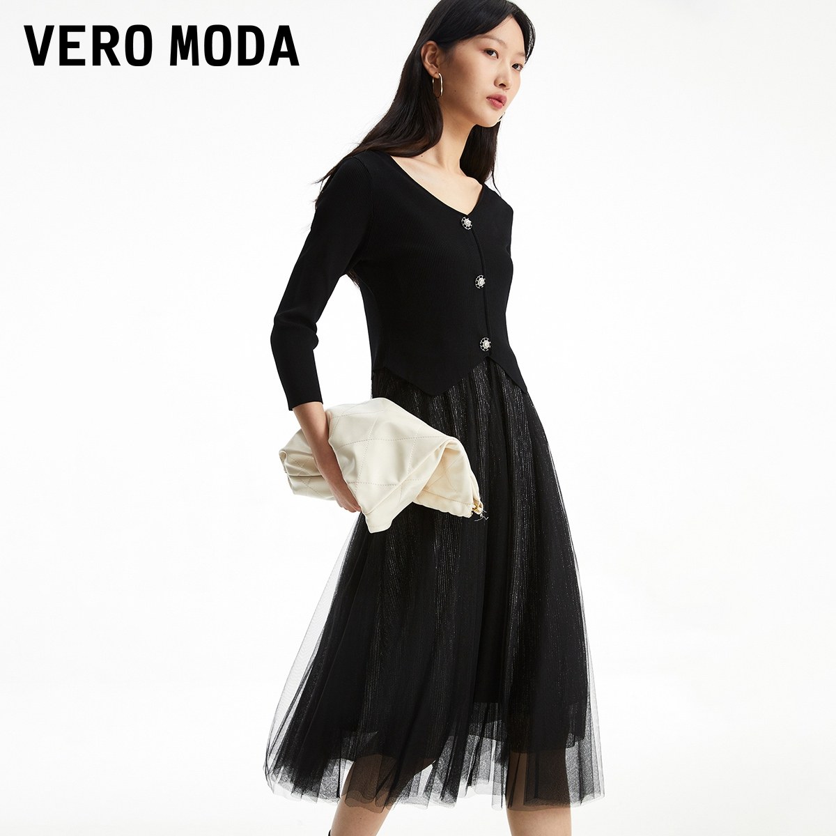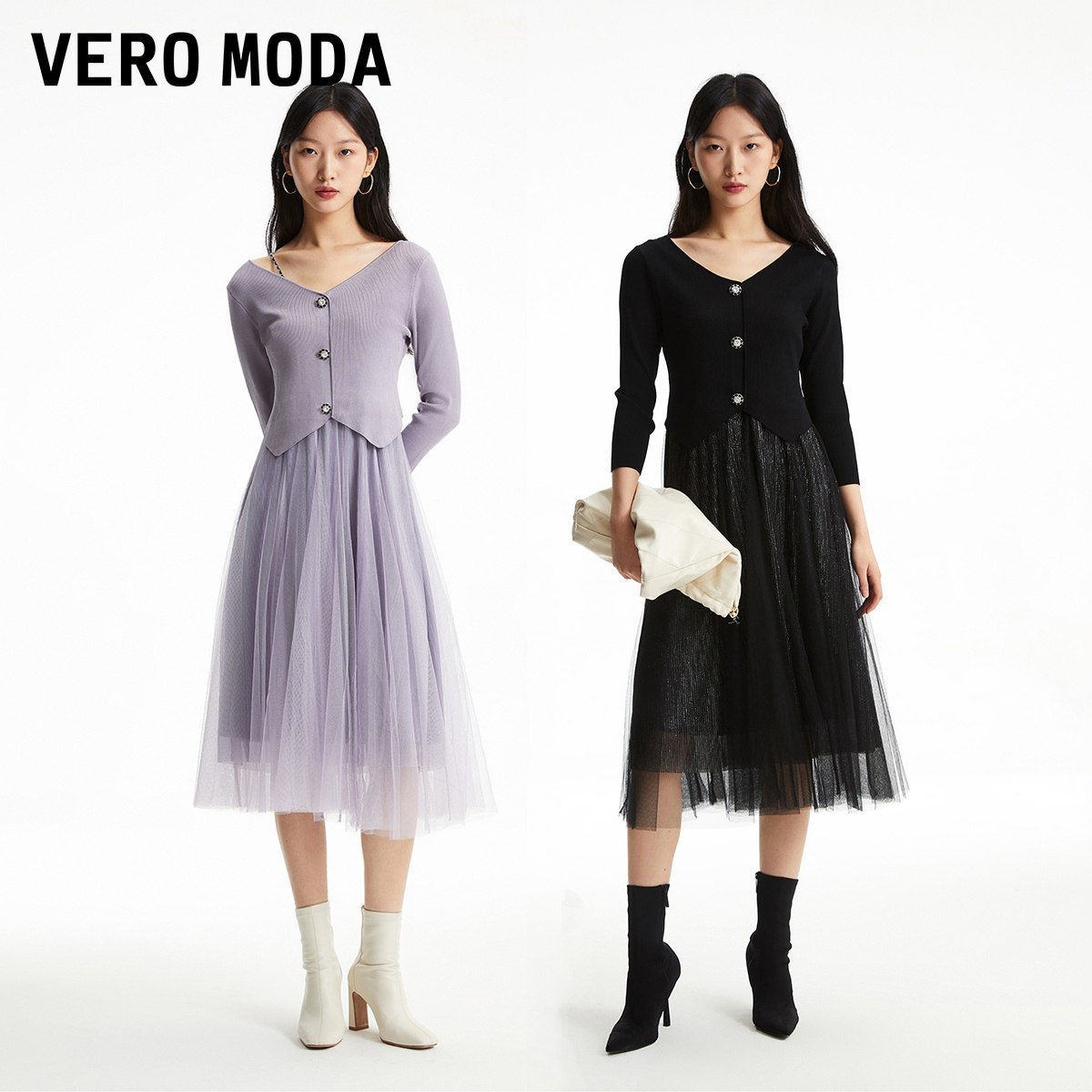Vero Moda连衣裙2025春季新款套装针织衫薄纱吊带仙女裙325146005