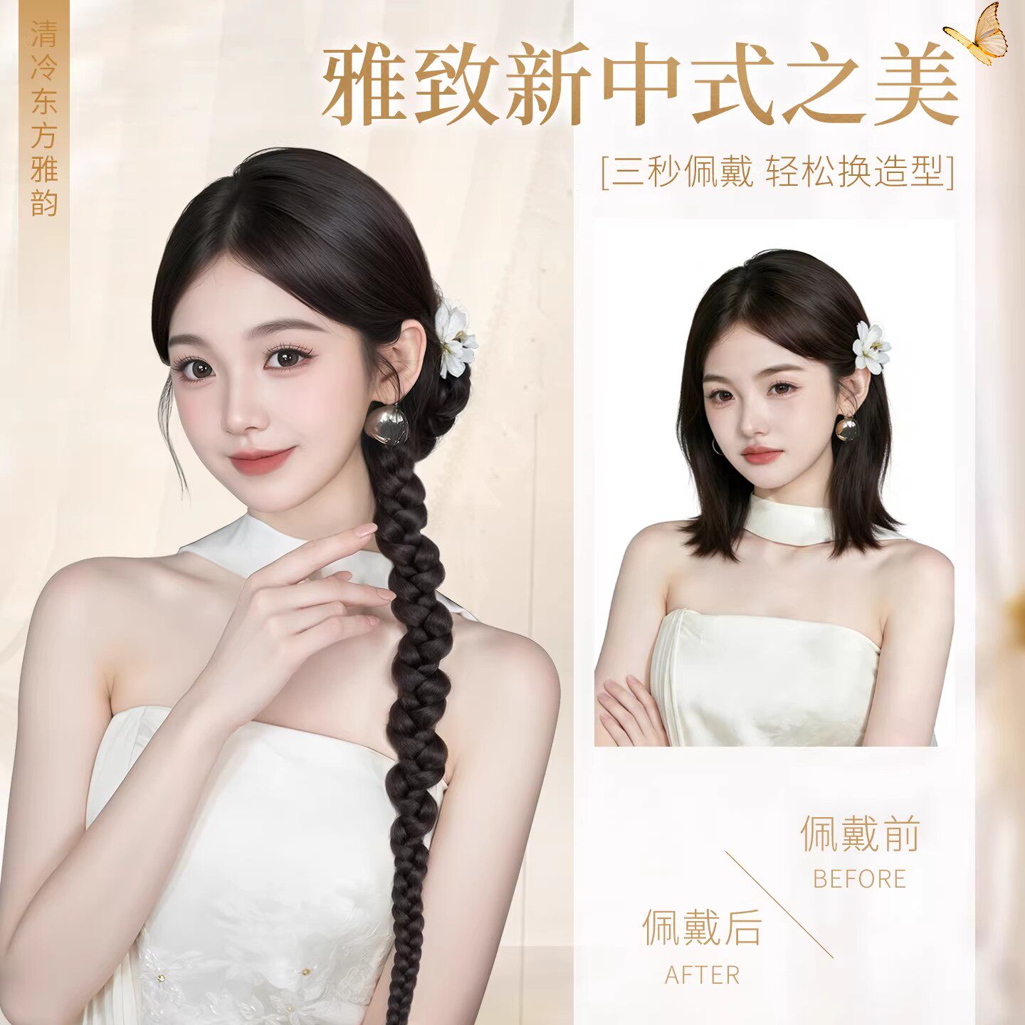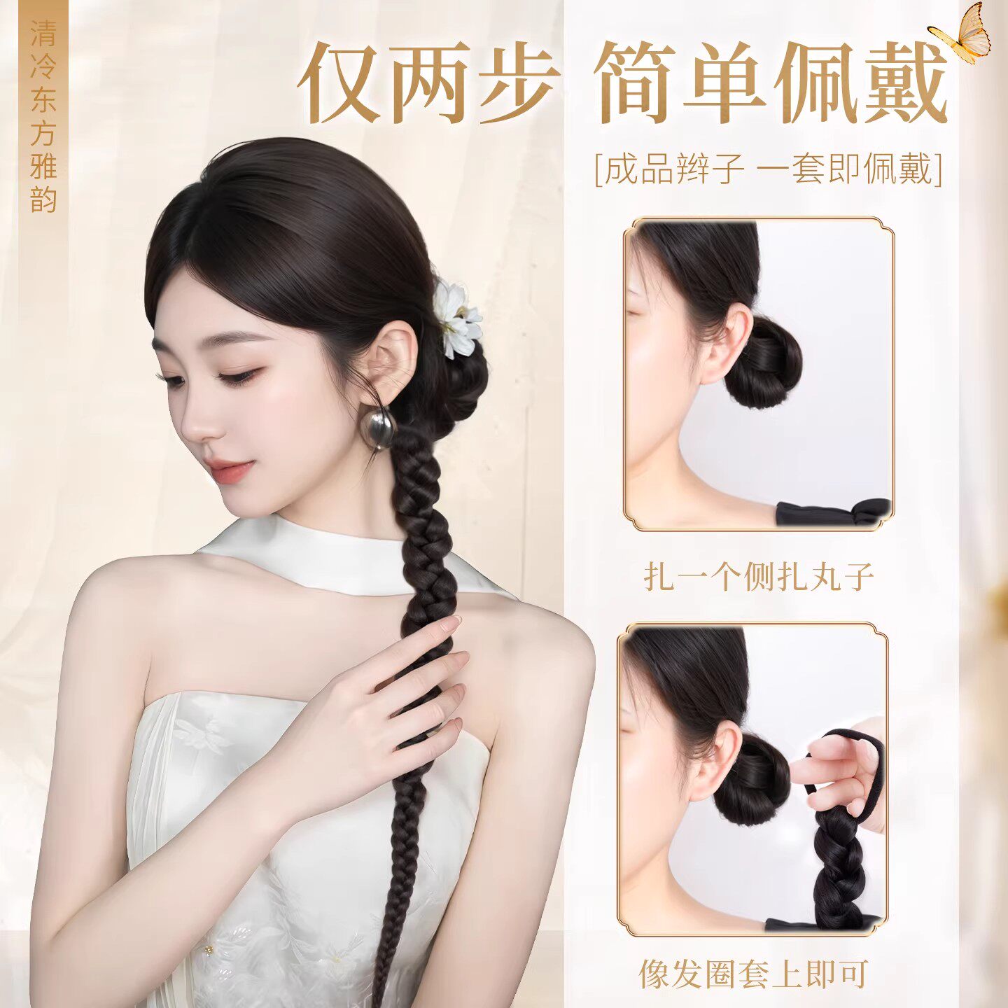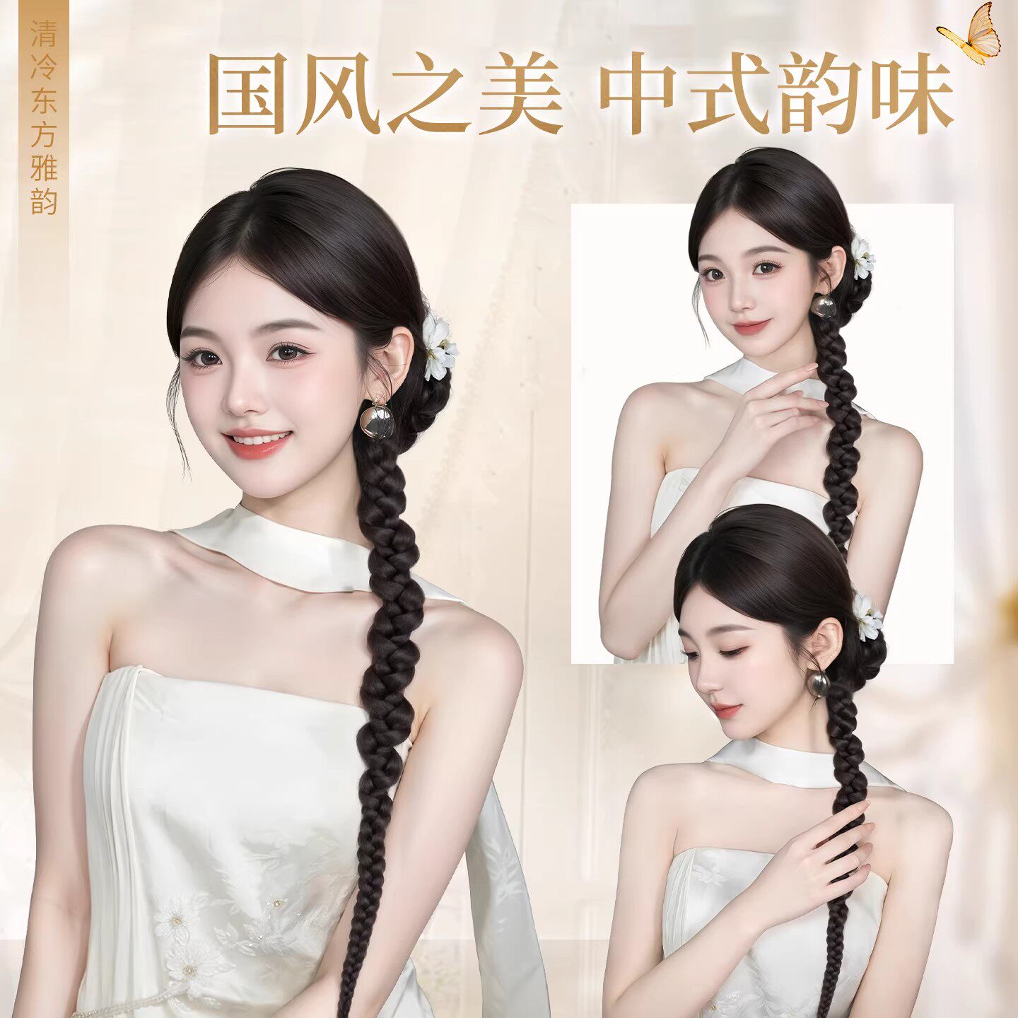 假发辫子女新中式国风头发侧边扭扭辫古风汉服旗袍假发辫马尾造型