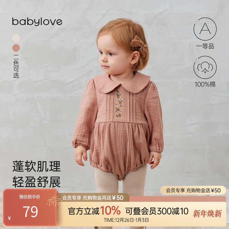【清仓】babylove女宝宝包屁衣春秋季纯棉纱布三角哈衣婴儿外出服
