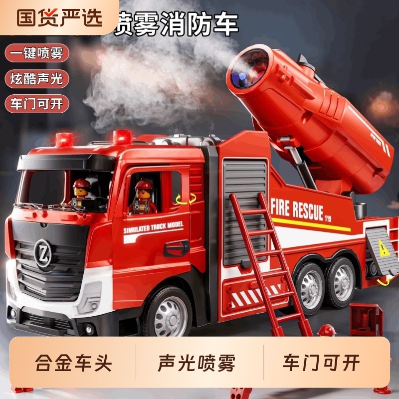 儿童大号消防车玩具车男孩合金可喷水洒水车云梯车消防员救援车