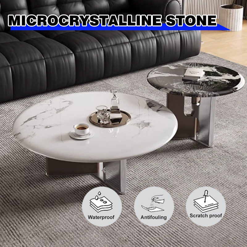 微晶石圆形茶几客厅大小圆茶几组合简约现代高级感小茶桌新款