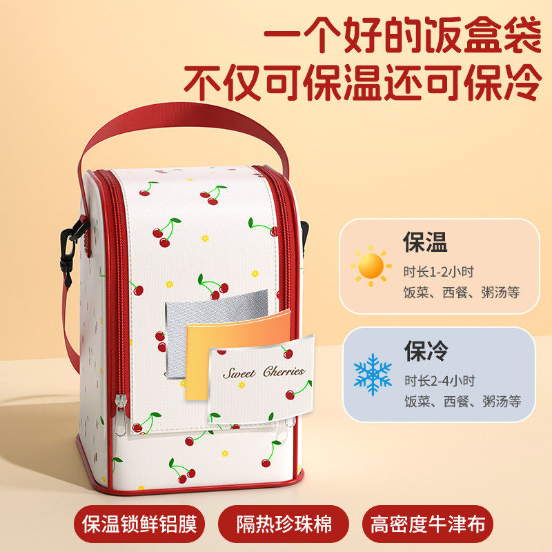圆形保温饭桶手提袋子加厚铝箔保温袋圆筒饭盒袋大容量大号便当包