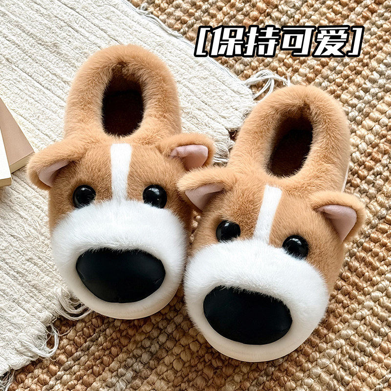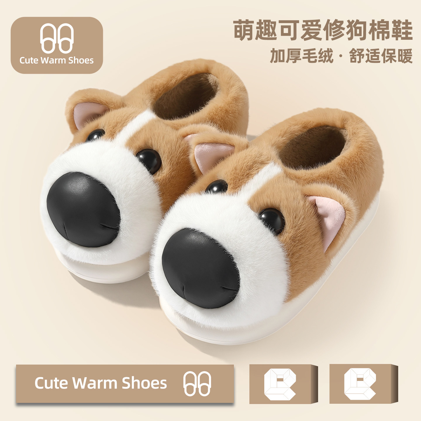 可爱柯基棉拖鞋女冬季2025新款家居加毛绒保暖情侣厚底包跟棉鞋男