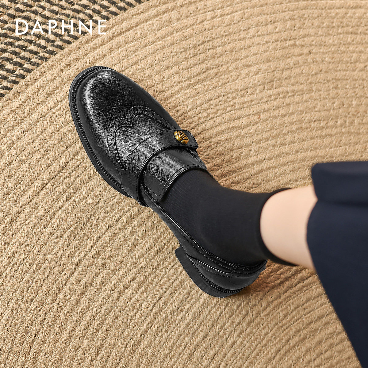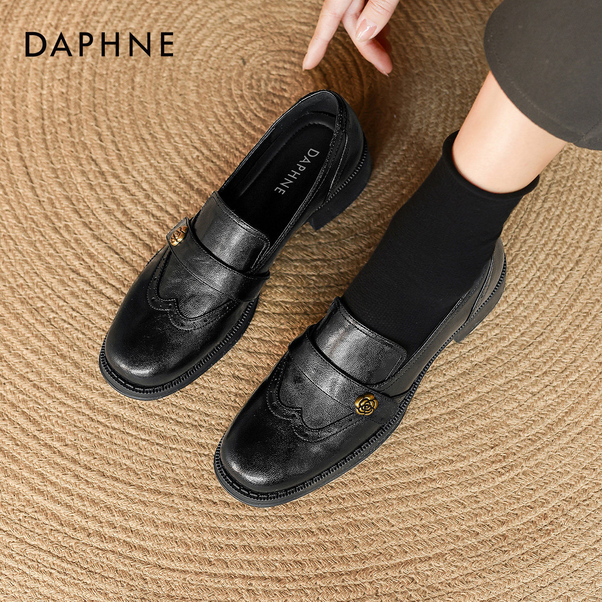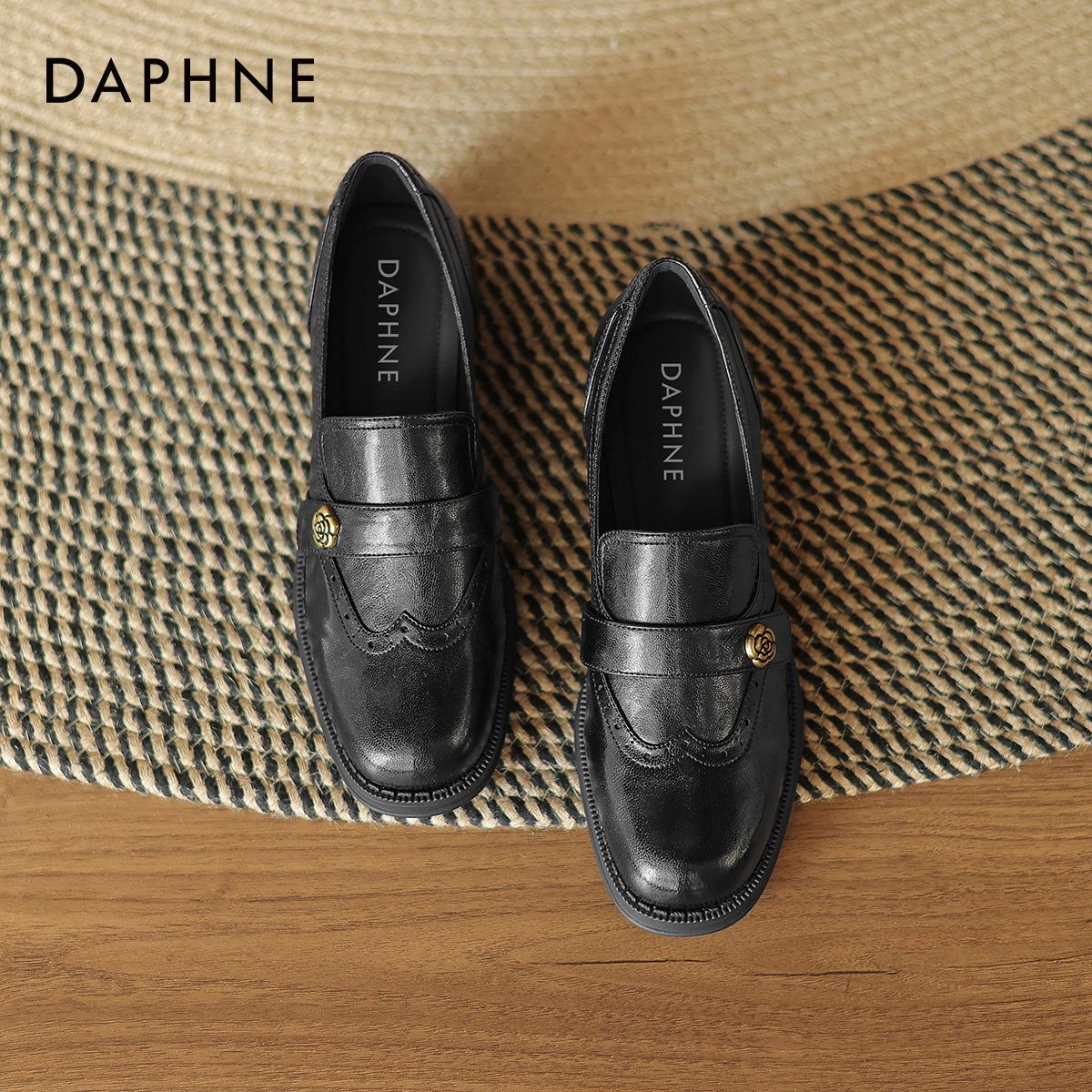 达芙妮黑色乐福鞋女款2026春季新款英伦风小皮鞋厚底不累脚豆豆鞋