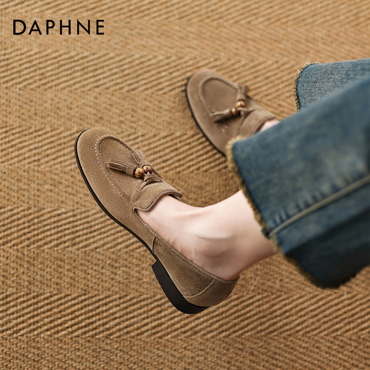 达芙妮老钱风乐福鞋女2026新款春季软底豆豆鞋平底皮鞋一脚蹬单鞋