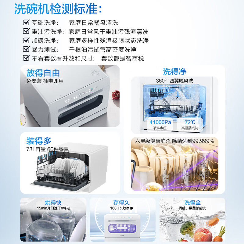 海尔小海贝白台式洗碗机8套免安装小型家用独立UV消毒除菌旗舰