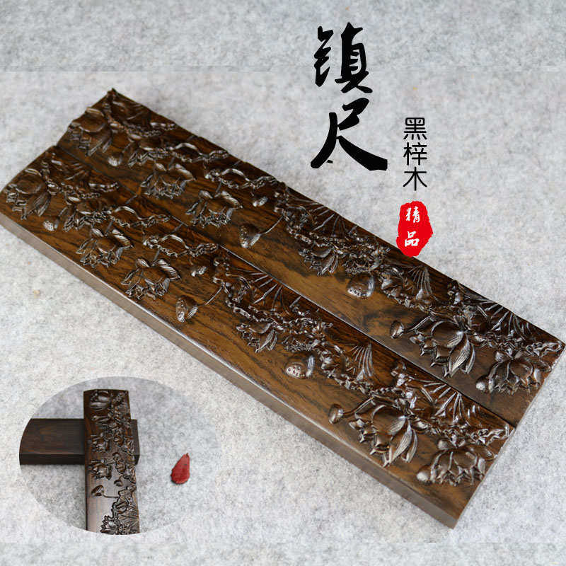 凌云阁红木雕刻书镇镇纸梓用品压镇尺文房四宝木黑书法浮雕纸镇