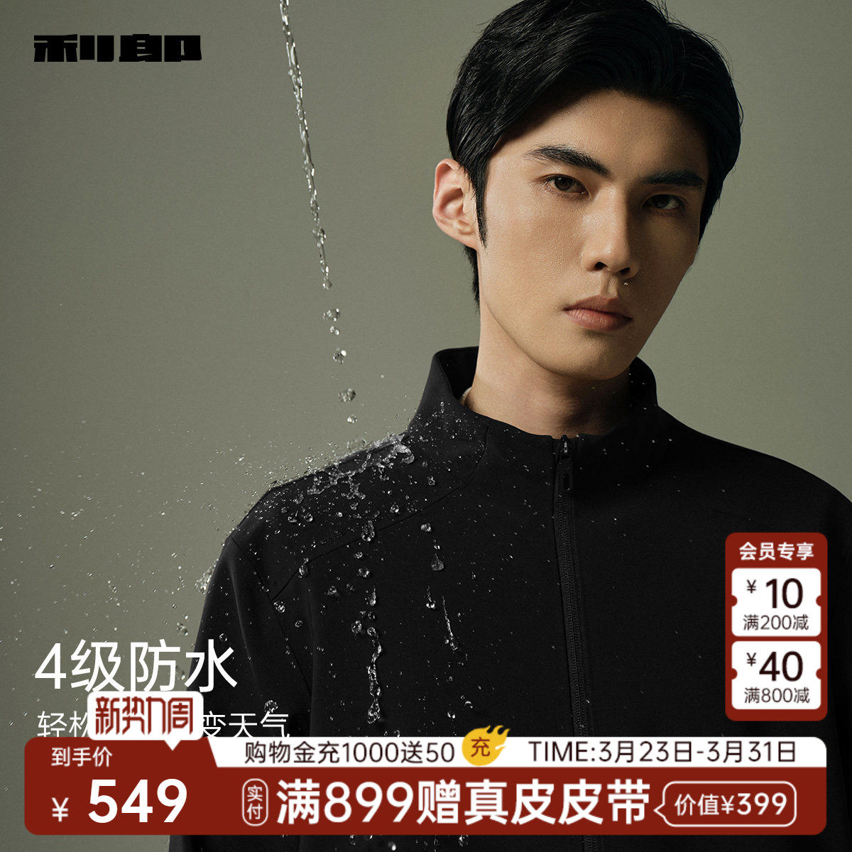 【防水】利郎官方夹克男士春秋款新款商务休闲立领黑色男装外套
