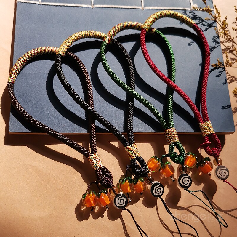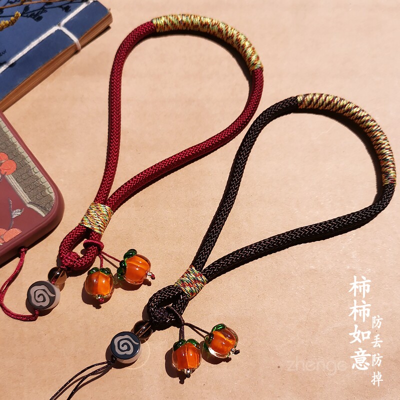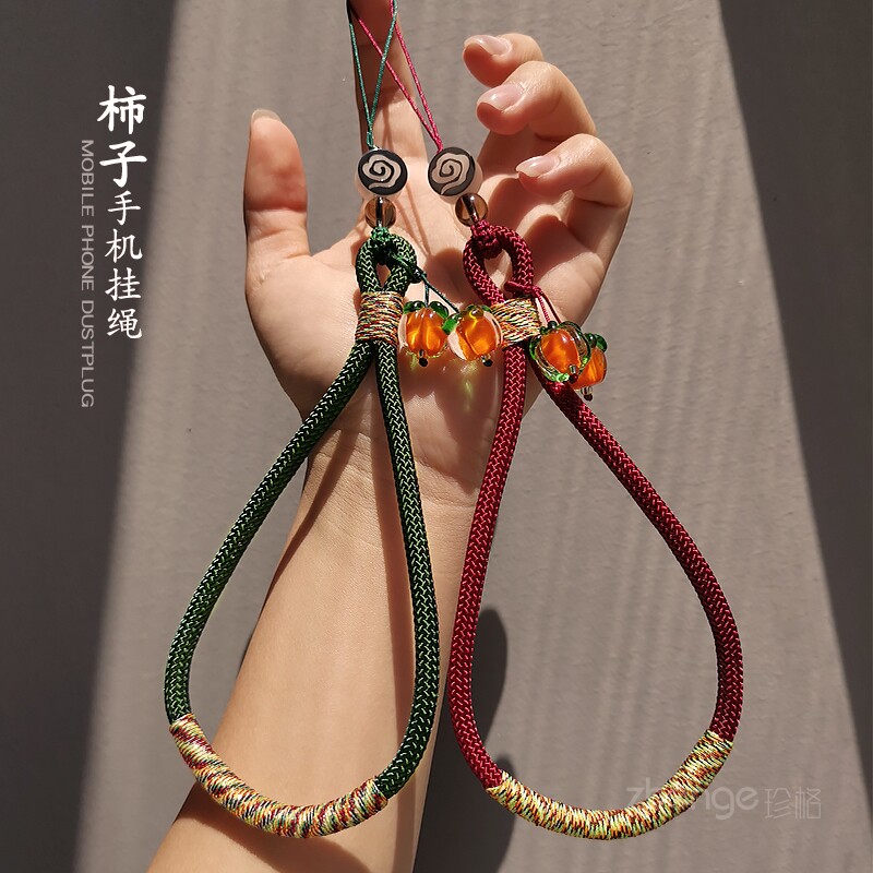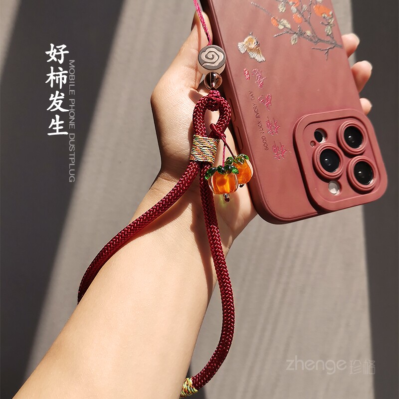 国风柿柿如意手工编织手机挂绳手腕短款ins轻奢小众精致高级感吊坠饰品户外登山旅游出行防丢摔相机挂件链子