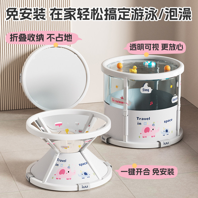IUU婴儿游泳桶家用泡澡桶新生儿折叠坐浴桶宝宝洗澡桶大号游泳池