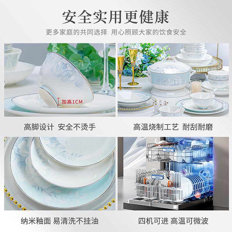 釉下彩陶瓷餐具套装家用2025新款碗碟盘子碗具日式乔迁新居碗盘筷