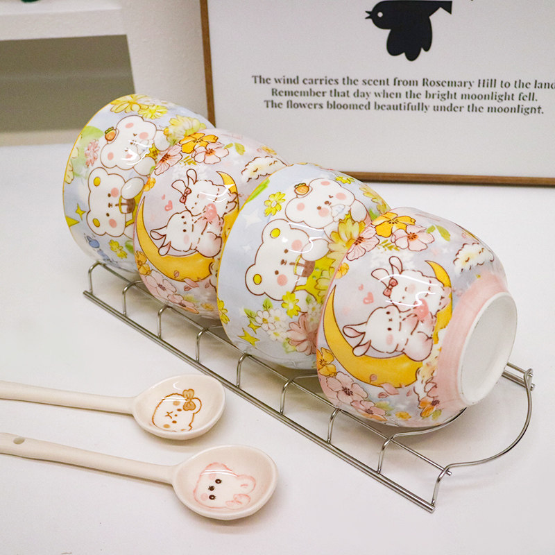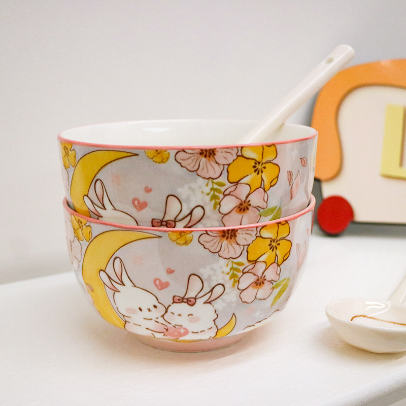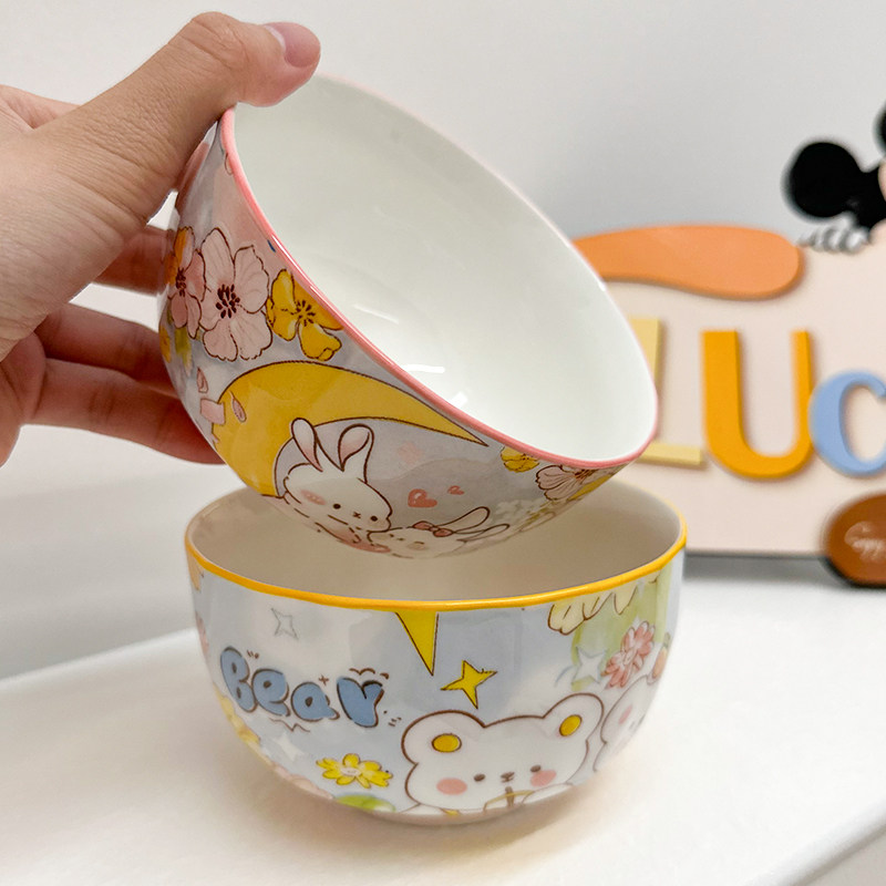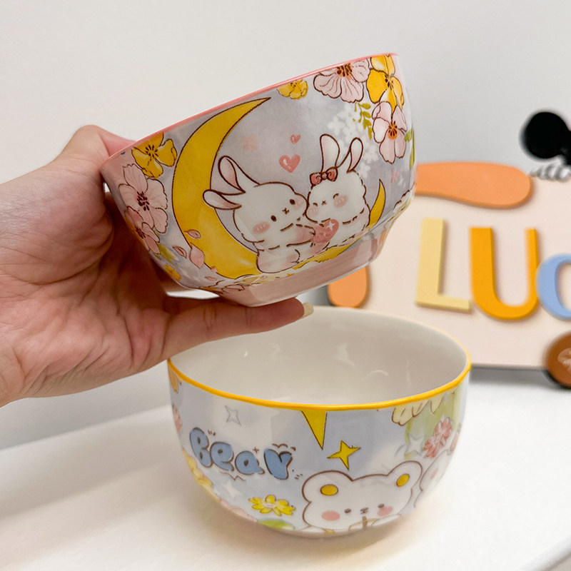 釉下彩创意陶瓷碗陶瓷卡通米饭碗家用喝汤碗粉嫩少女心儿童食品碗