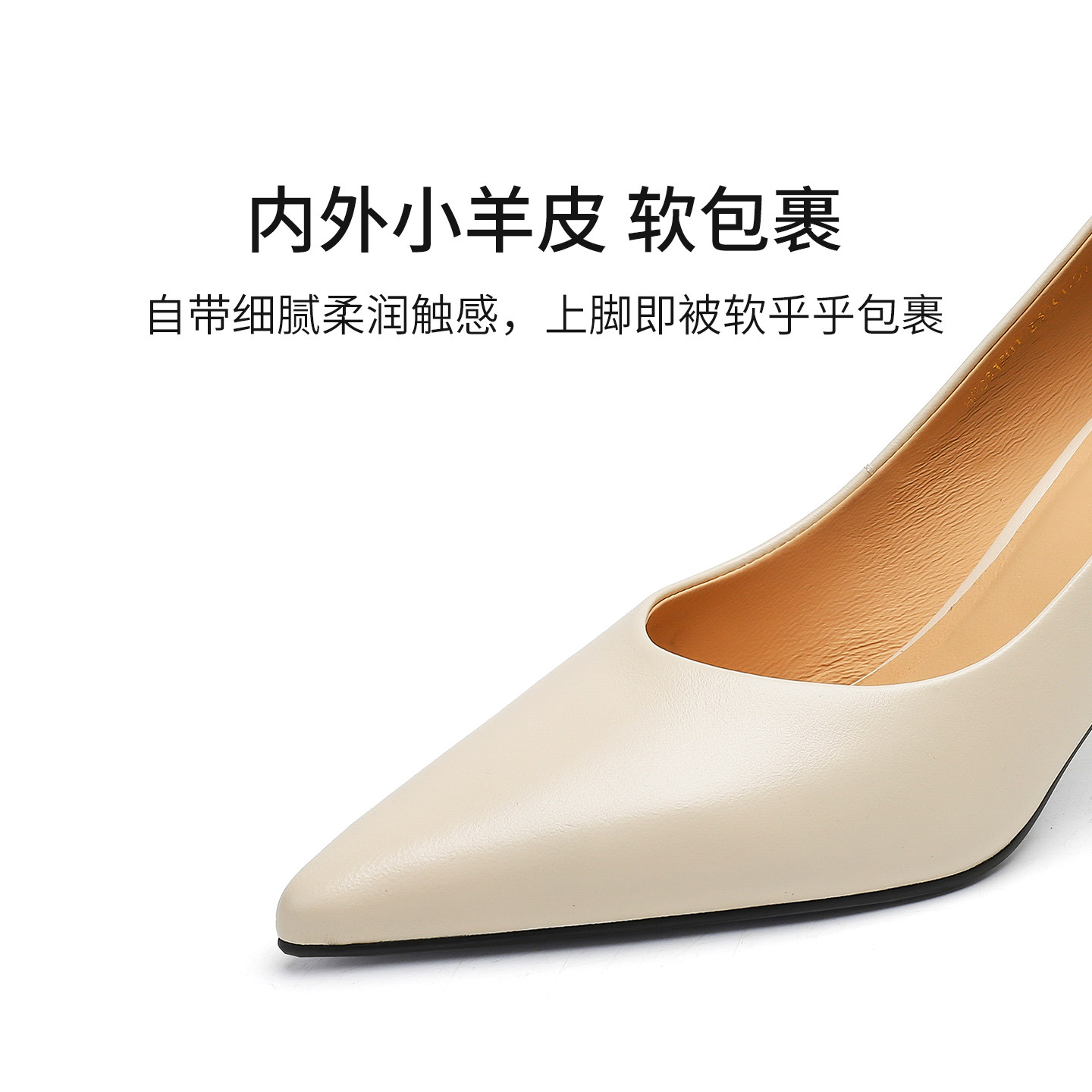 羊皮版~内增高尖头单鞋女2025爆款气质裸色浅口法式新款高跟鞋子