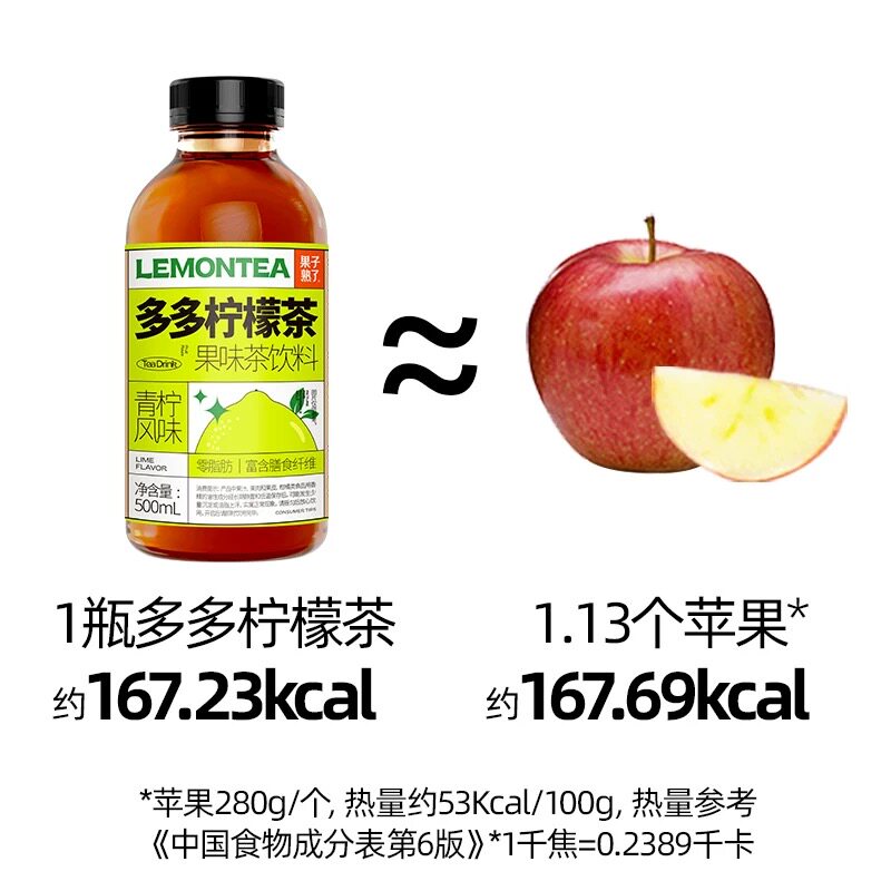 果子熟了多多柠檬茶500ml/瓶青柠夏黑葡萄果茶饮料富含膳食纤维