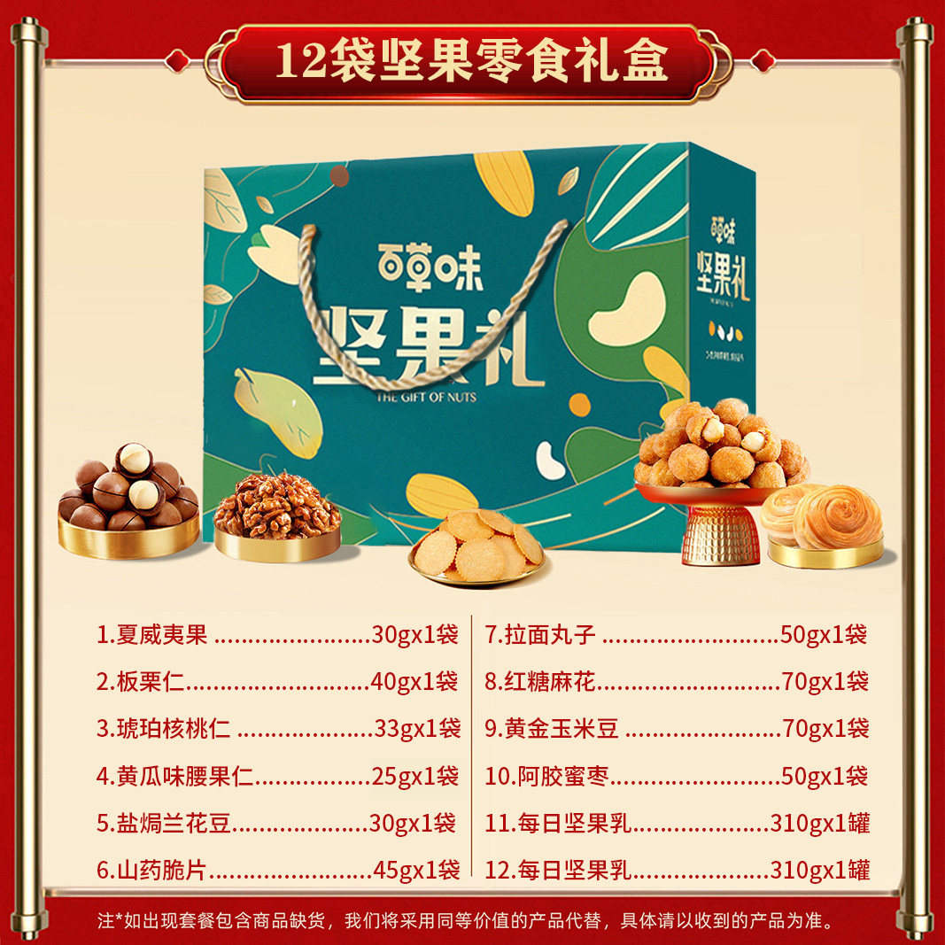百草味坚果大礼包1260g混合干果礼盒每日坚果健康零食送礼送长辈