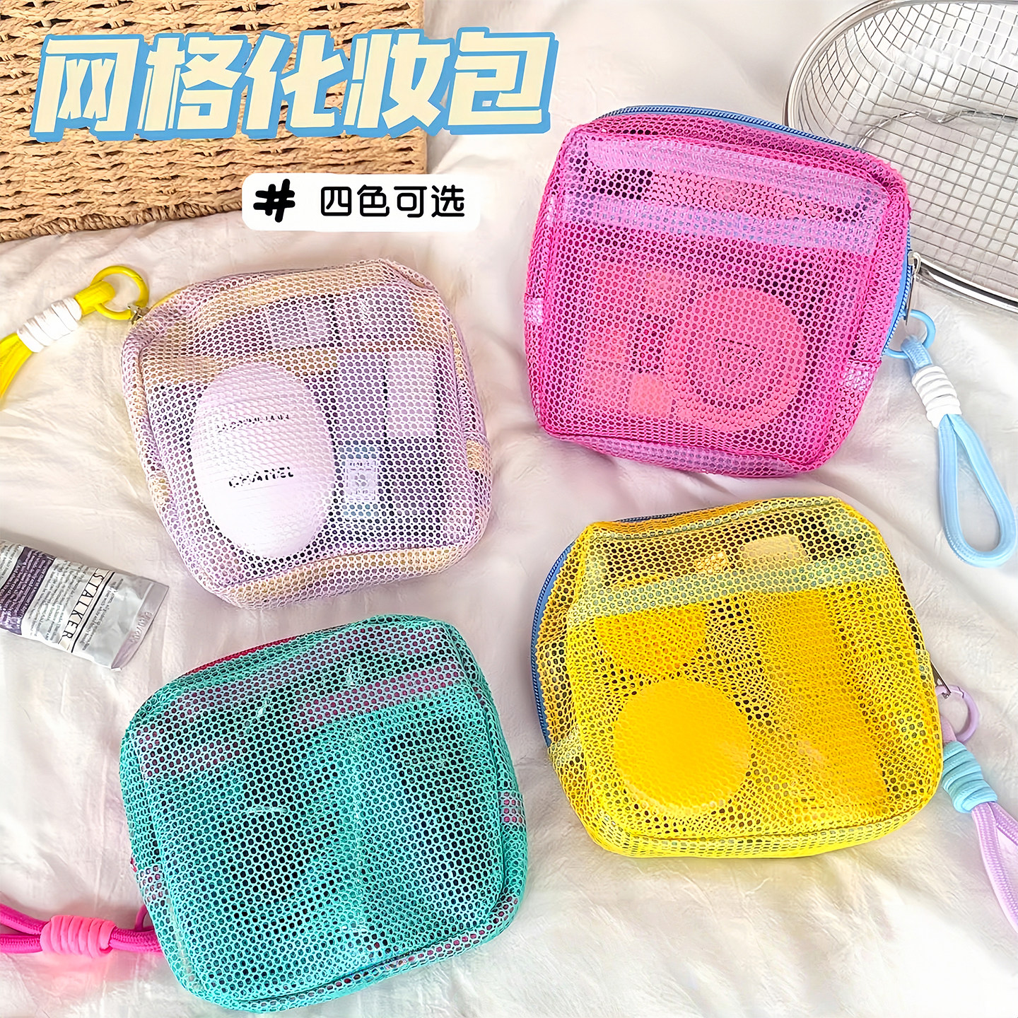 多巴胺豆腐包迷你网纱便携旅行洗漱化妆品收纳包补妆包网格杂物包