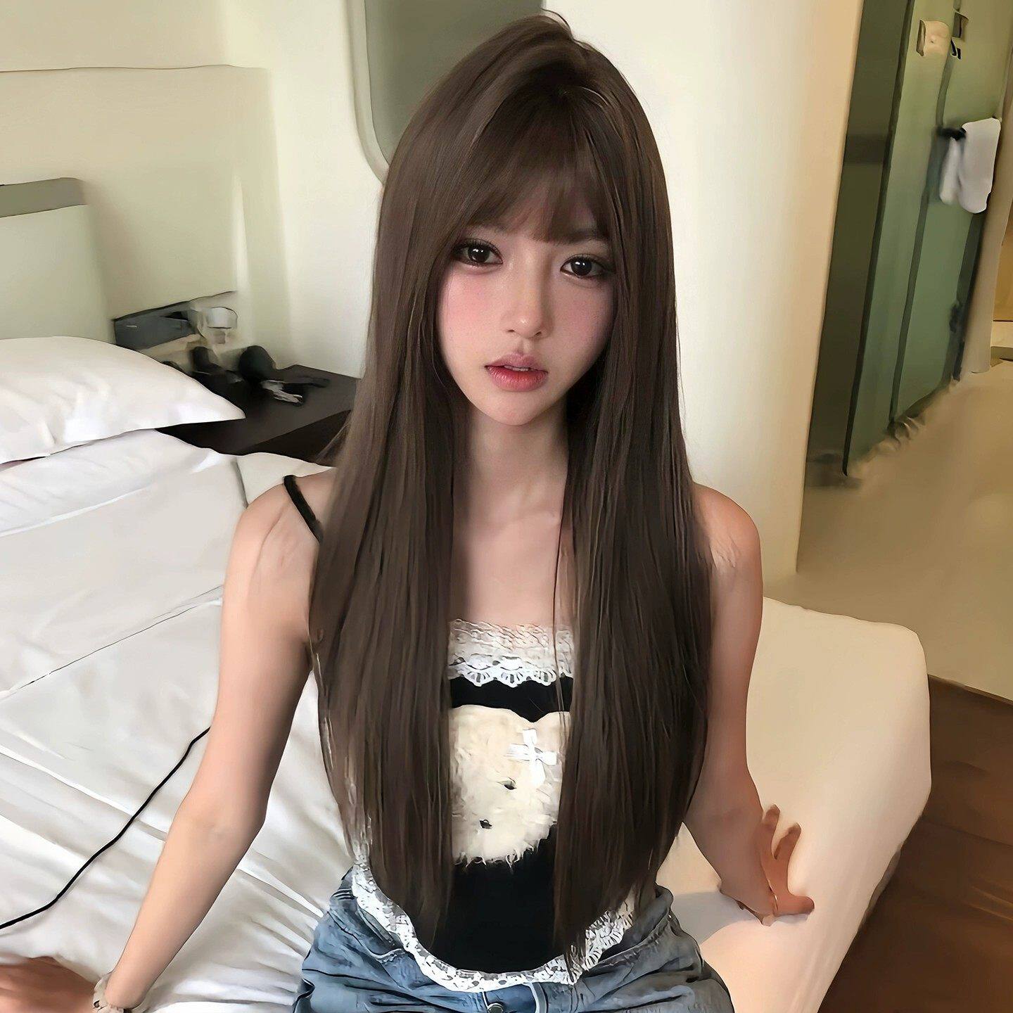 假发女长发长直发空气刘海Lolita圆脸甜美自然夏天薄款网红JK全头