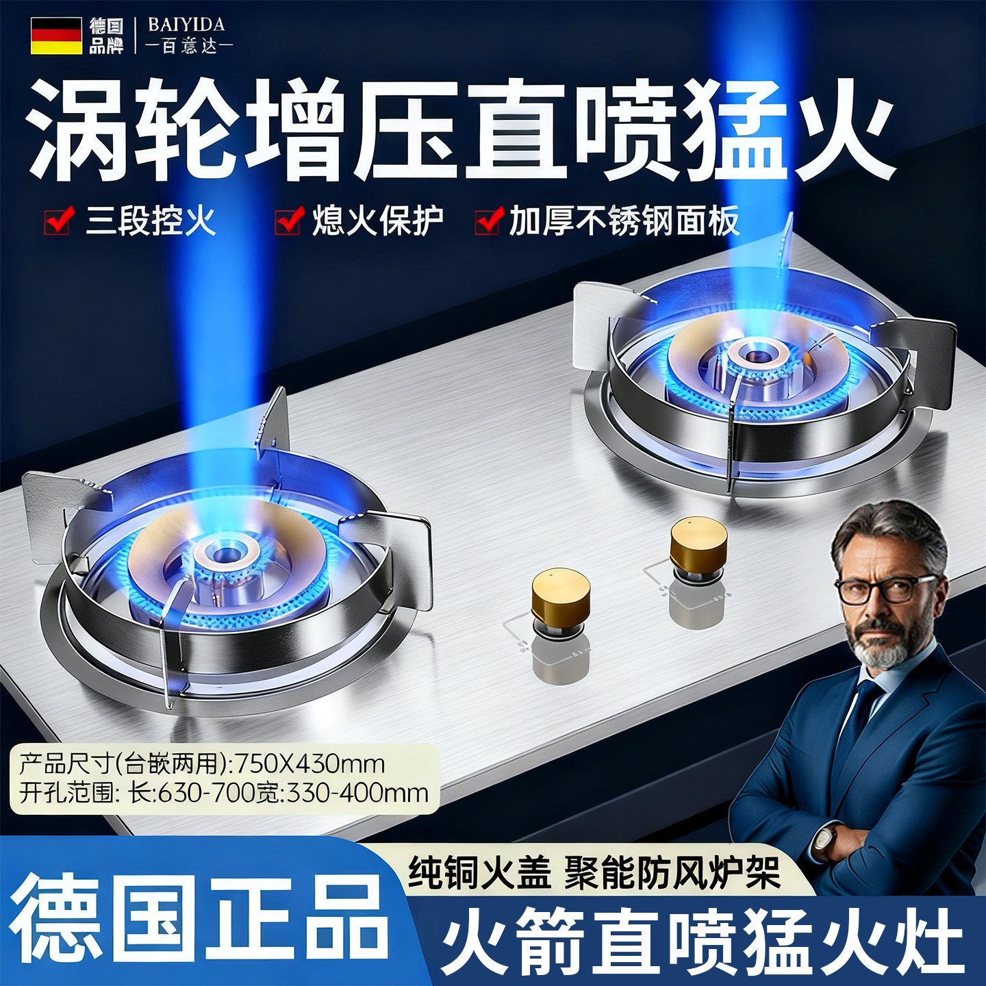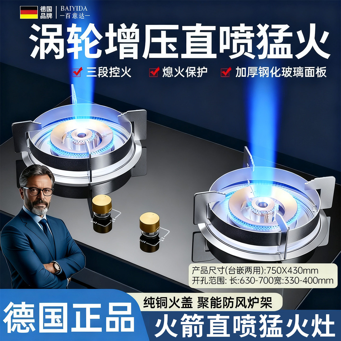 德国正品煤气燃气灶全铜家用增压猛火双灶天燃液化气定时嵌入台式