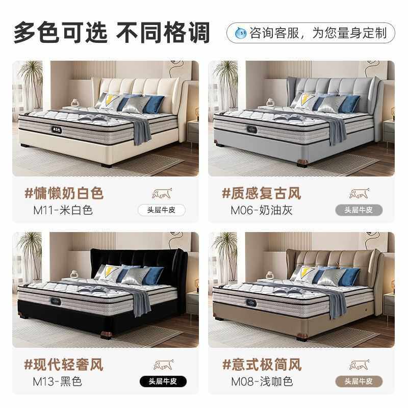 意式高端轻奢奶油风真皮床现代主卧双人床网红软包皮艺床源头工厂