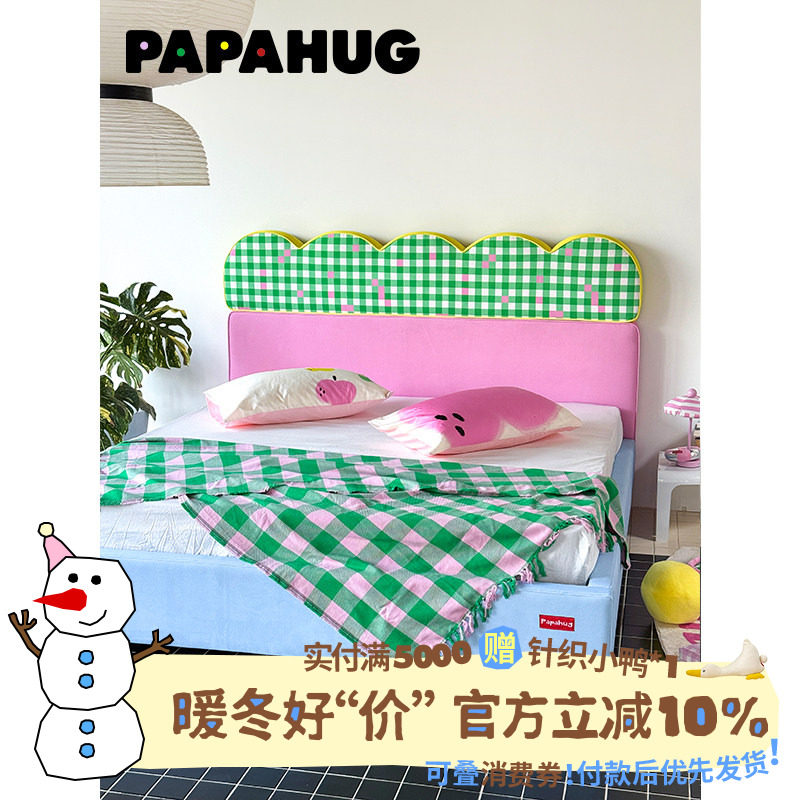 PAPAHUG 卧室实木床软包像素花园1.8米布艺主卧大床架复古双人床