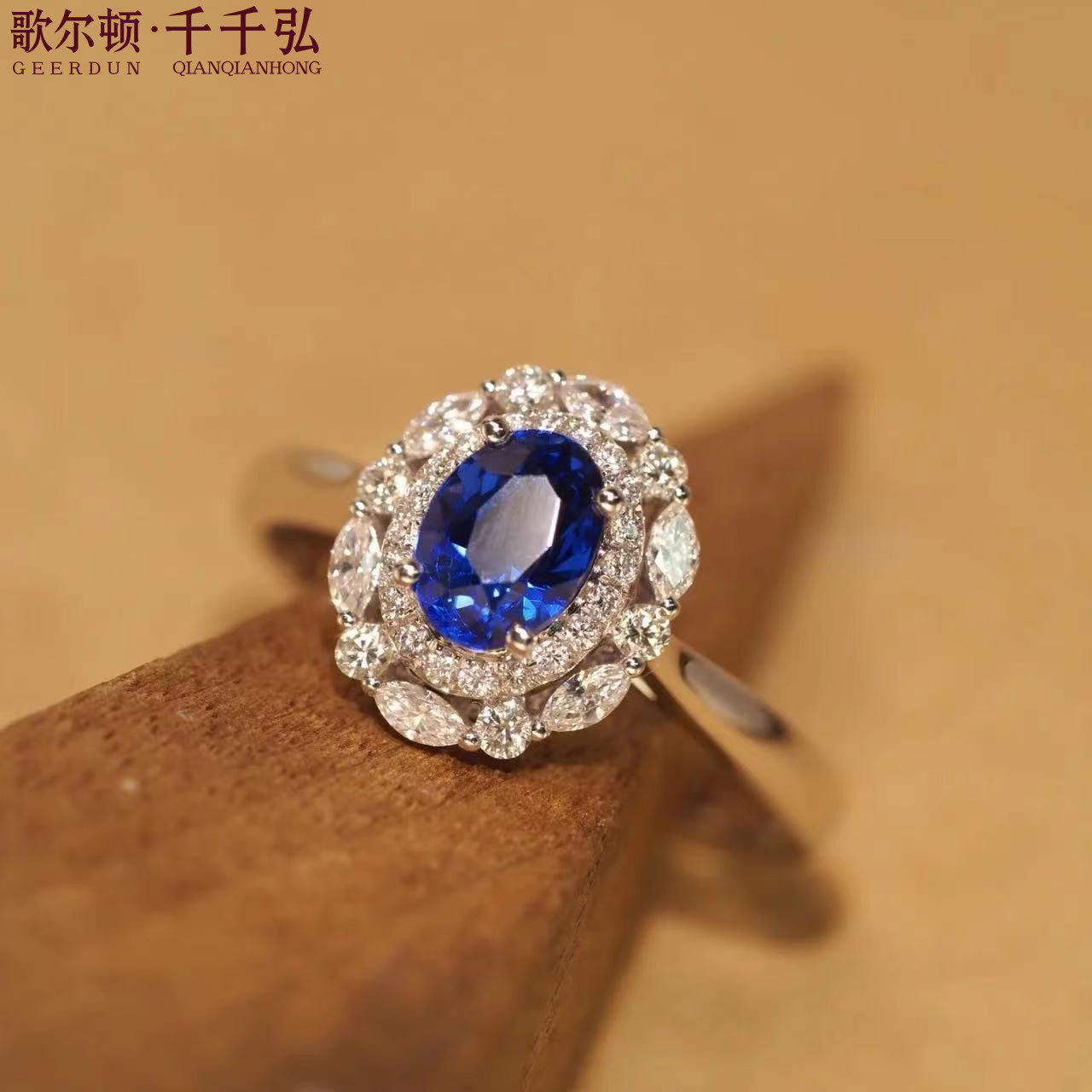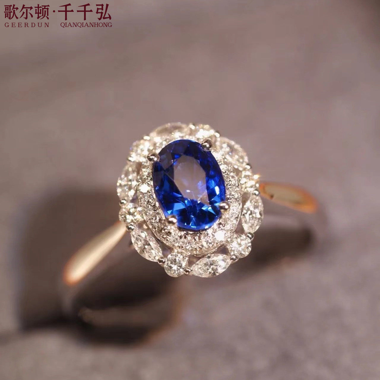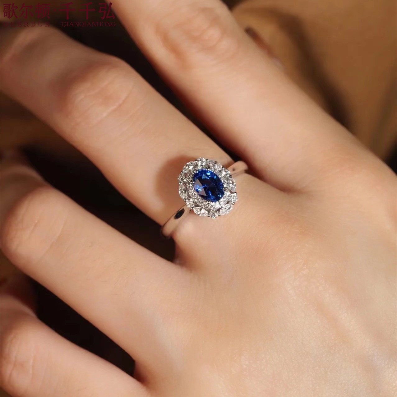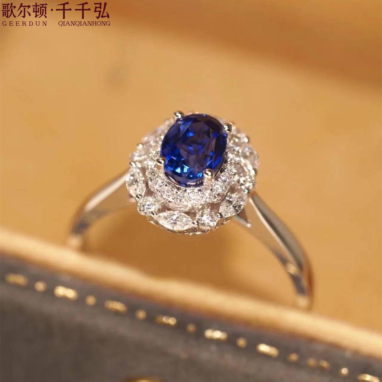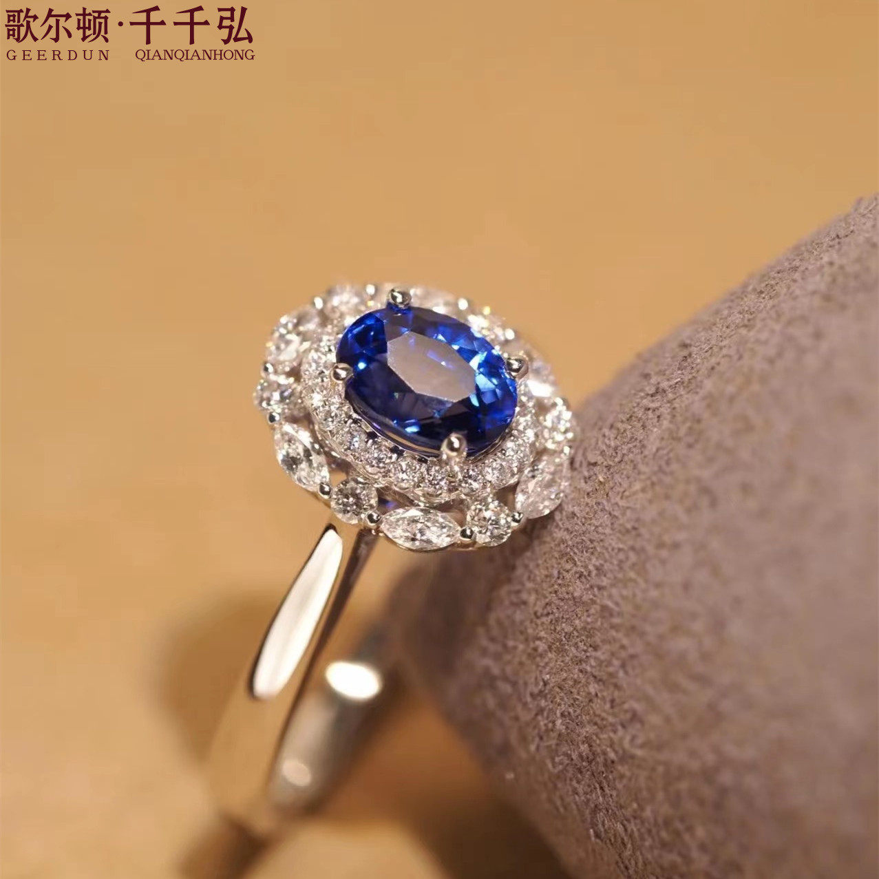 18K白金天然斯里兰卡蓝宝石戒指女现货顺丰包邮一物一证保真现货