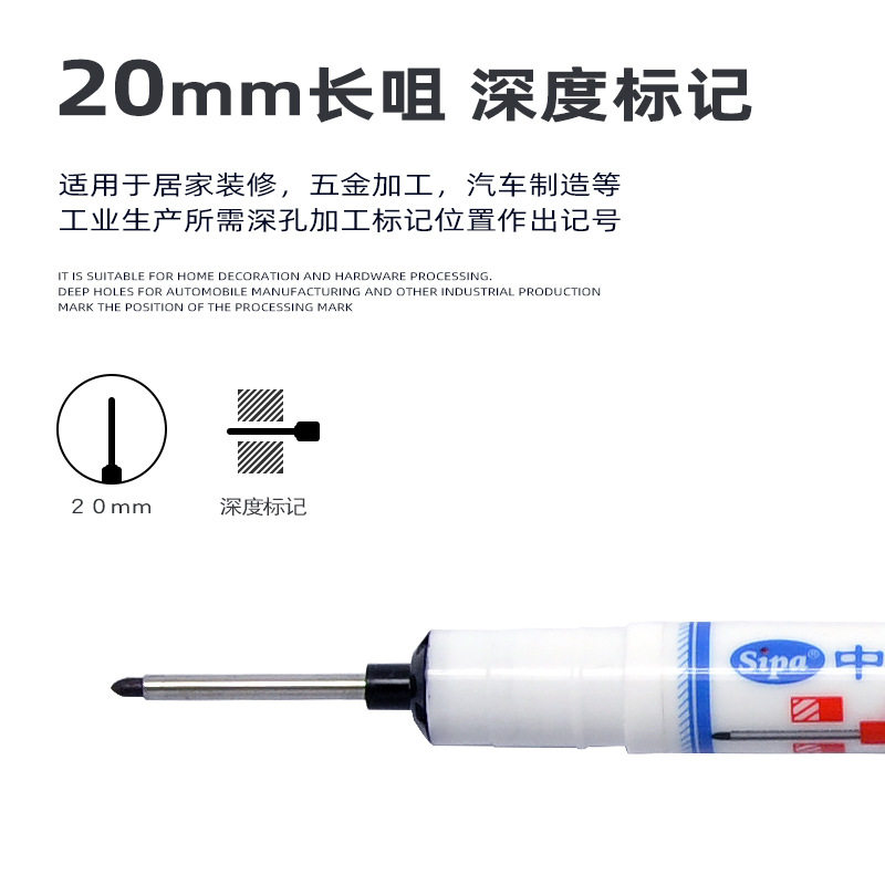 中柏长头记号笔油性适用深孔处20mm加长防水快干木工瓷砖卫浴装修