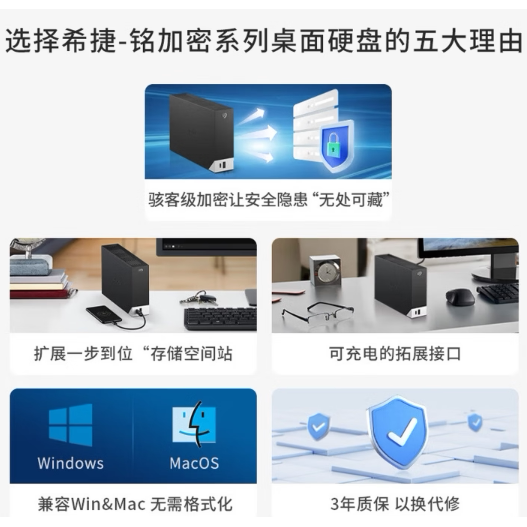 希捷桌面移动硬盘铭系列3.5英寸USBHUB大容量存储AES-256加密8TB