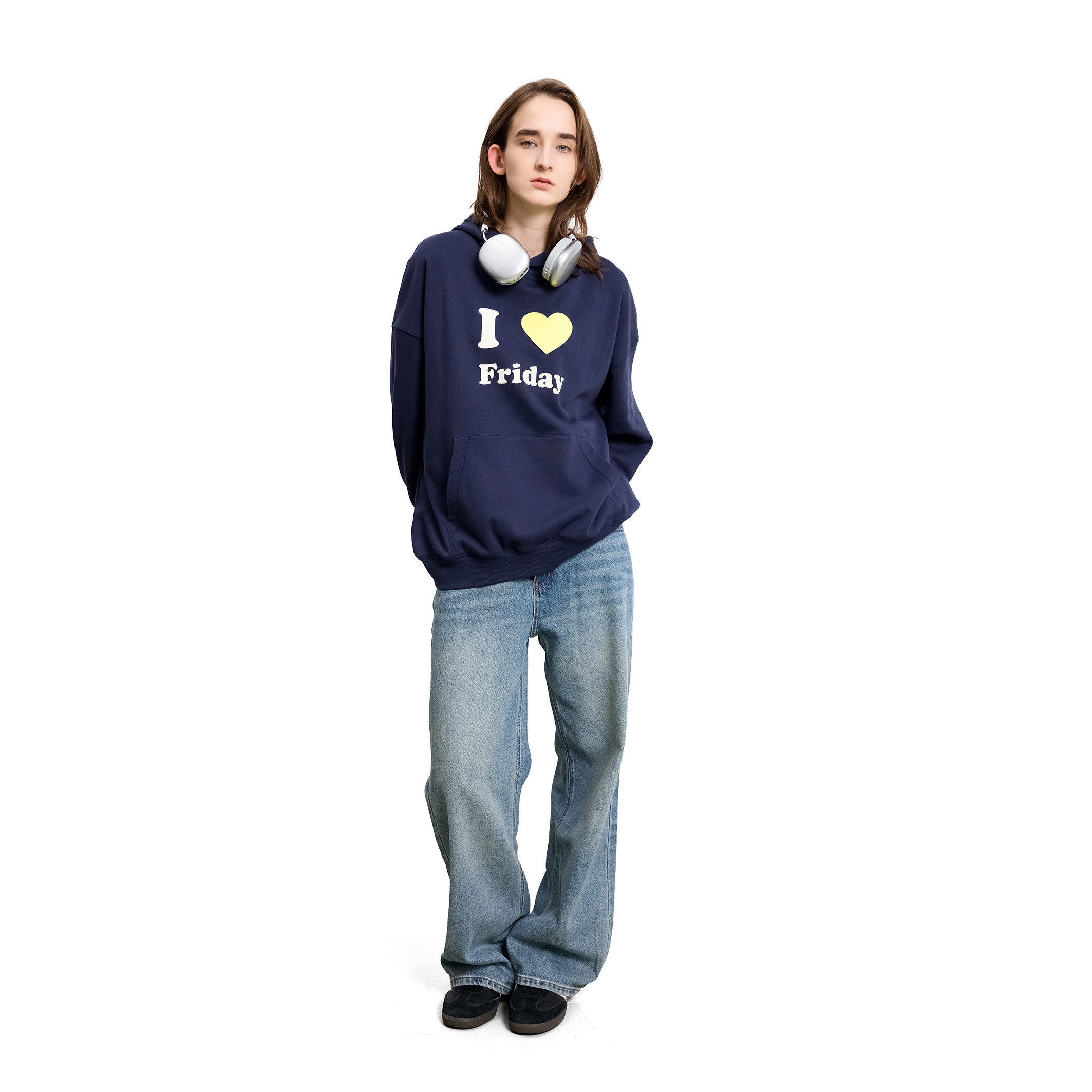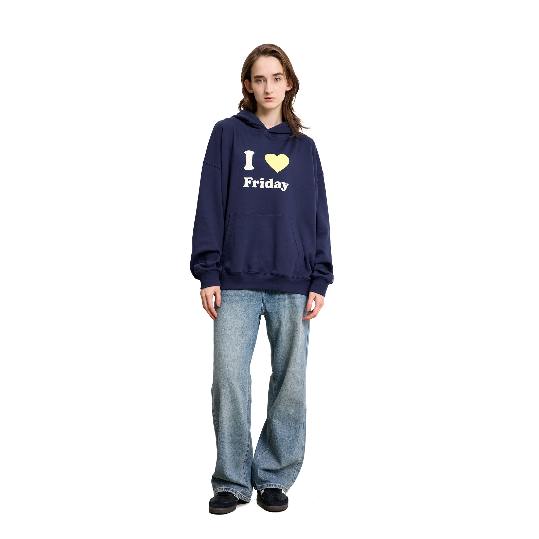 LarvaCosmos|字母印花系列宽松连帽卫衣I love Friday