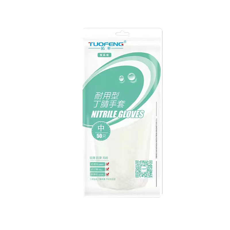 拓丰加长加厚一次性丁腈手套耐用防水防油食品级家务工作劳保橡胶