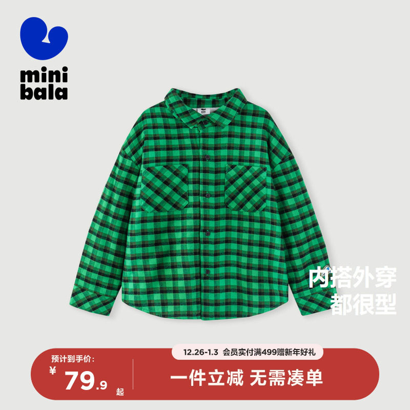 【秋季上新】迷你巴拉巴拉男童女童长袖衬衫秋冬宝宝加绒格子衣服
