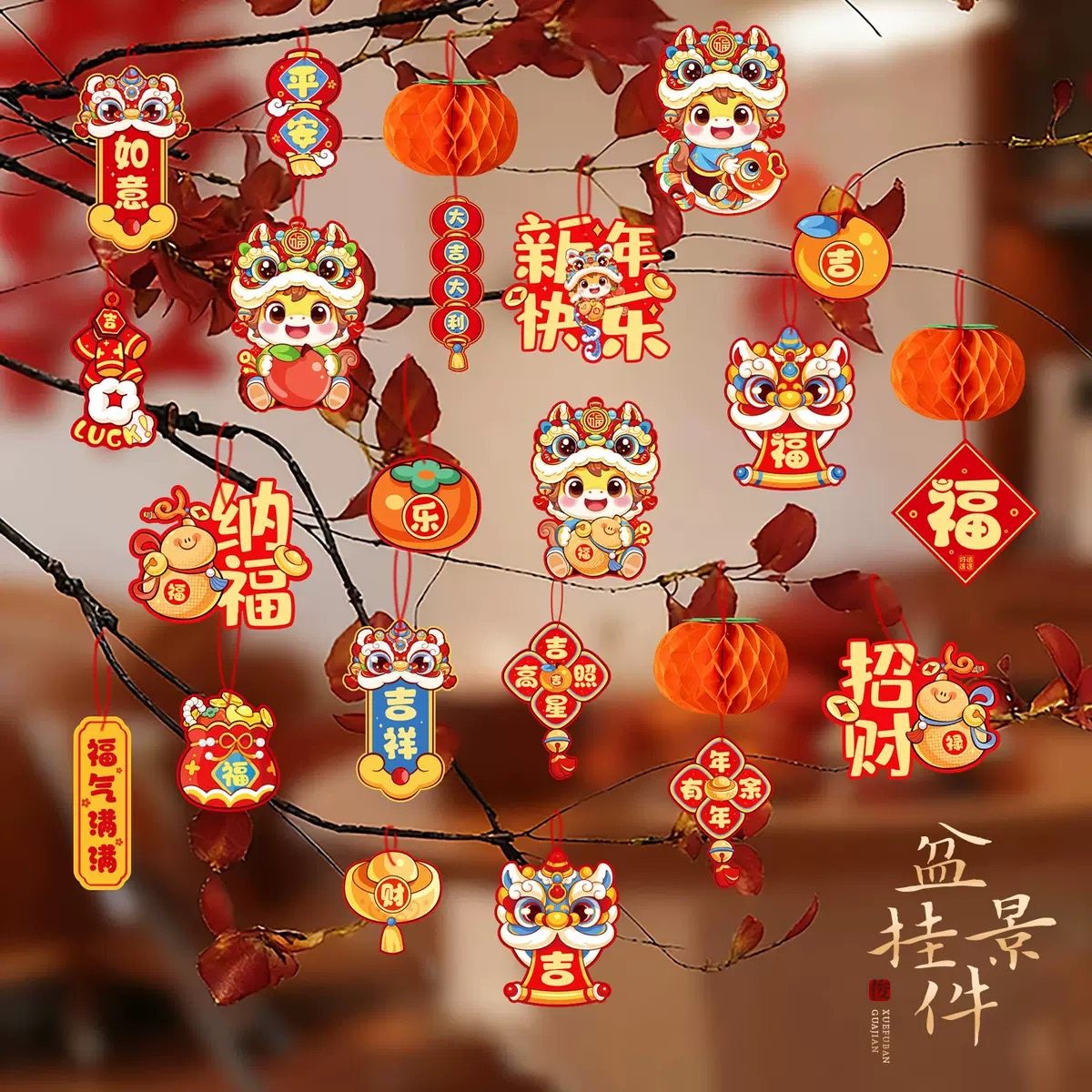 新年春节氛围绿植装饰2026马年过年挂件盆景元旦挂饰灯笼摆件防水