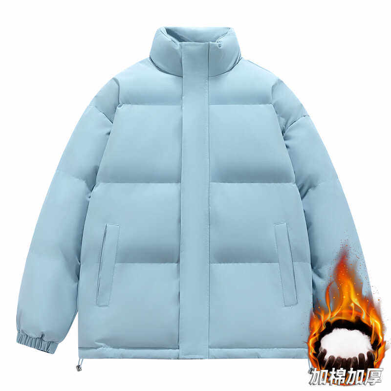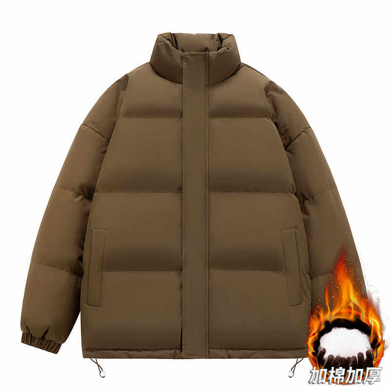 一线撤标撤柜2024年冬季新款简约纯色宽松休闲百搭立领面包服棉衣